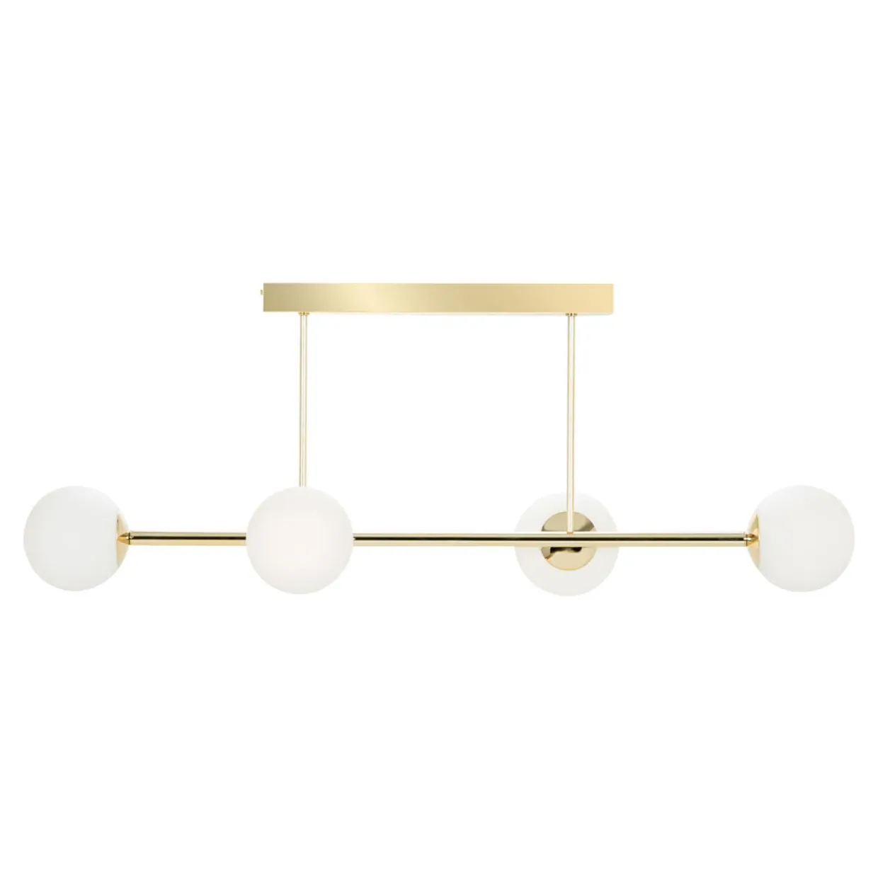 Oprawa lampy posiada miejsce aż dla 4 żarówek. Zostały one ukryte pod kulistymi kloszami i rozmieszczone w symetryczny sposób na listwie.