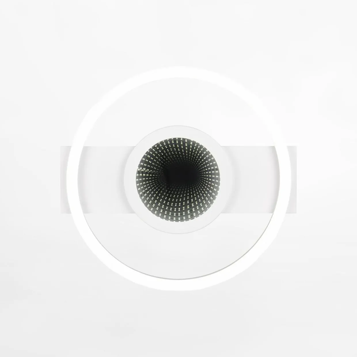 Okrągła forma z centralnym panelem LED przyciąga wzrok i dobrze komponuje się z nowoczesnymi aranżacjami.