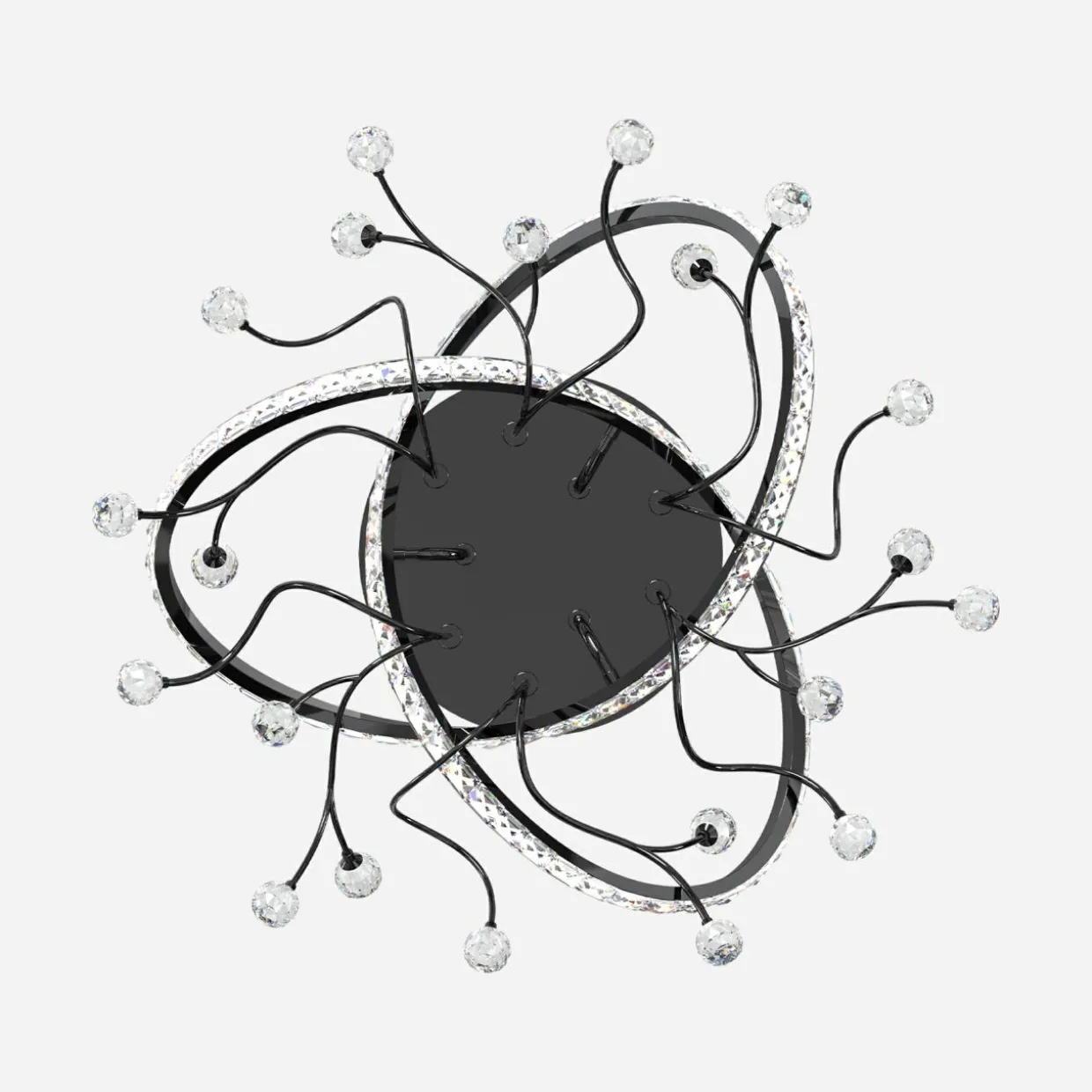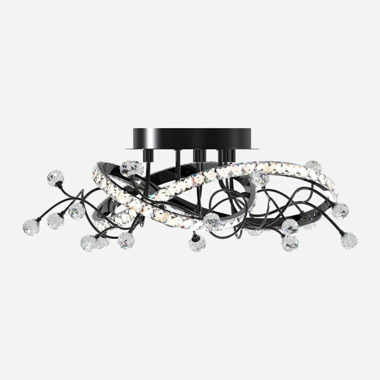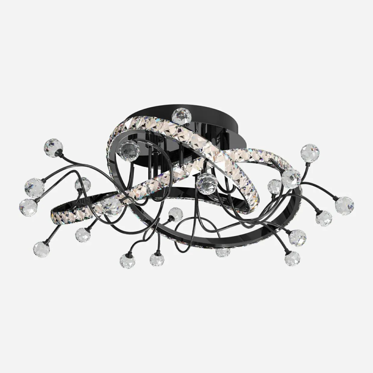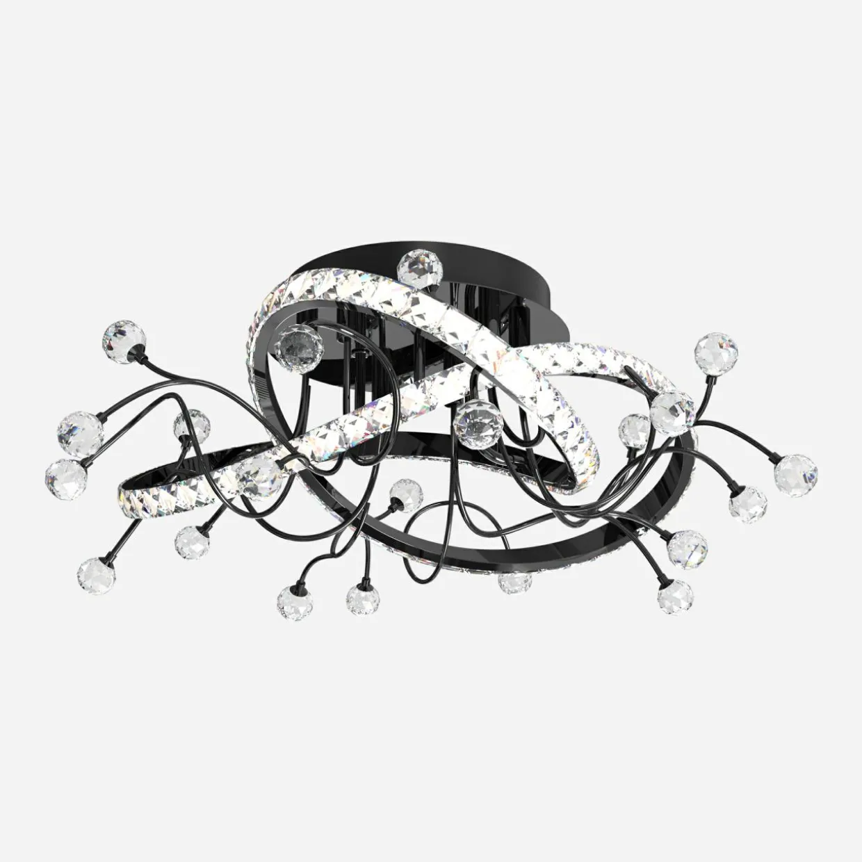 - Czarne, błyszczące wykończenie lampy MAIA zostało podkreślone akrylowymi kryształkami oraz dopasowanymi do kształtu lampy paskami LED.