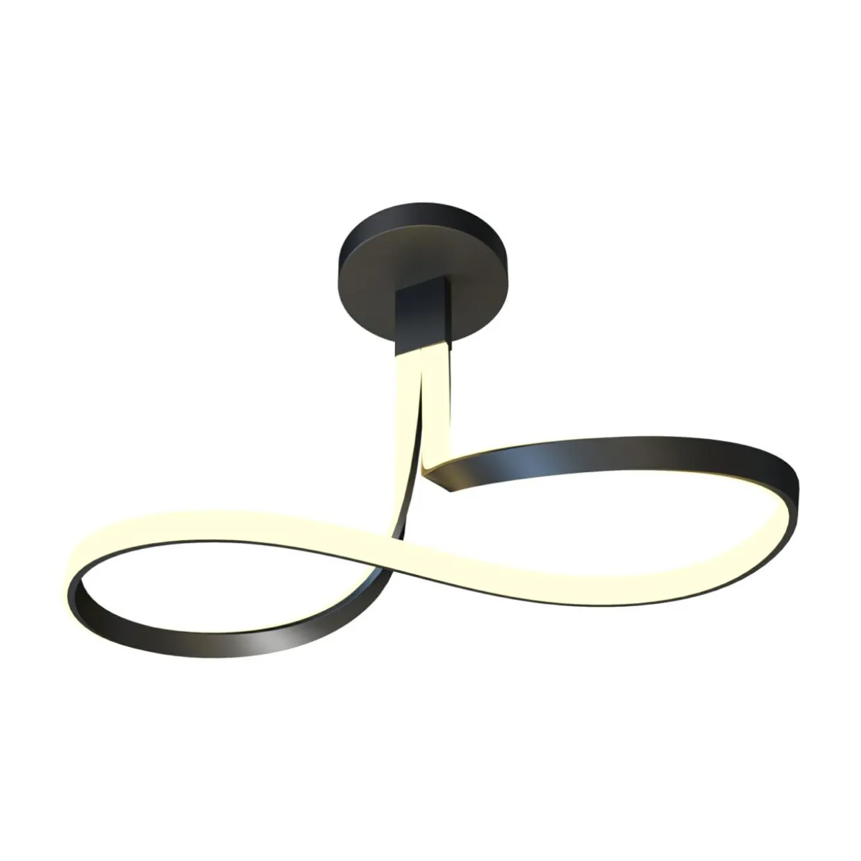 - Podstawowym atutem VISO jest oryginalny kształt. Wijąca się pod sufitem czarna wstęga została ozdobiona paskiem LED, który podąża za każdym zakrzywieniem elementu dekoracyjnego lampy.