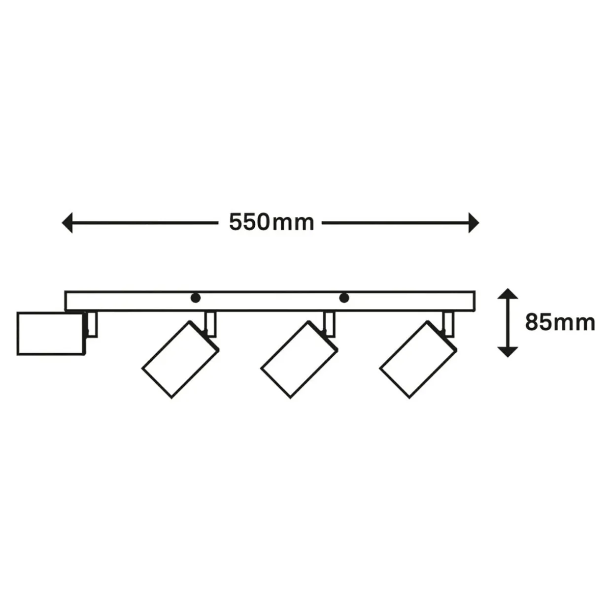 Posiada oprawę przeznaczoną dla 4 żarówek LED typu GU10 o mocy maksymalnej 9W.