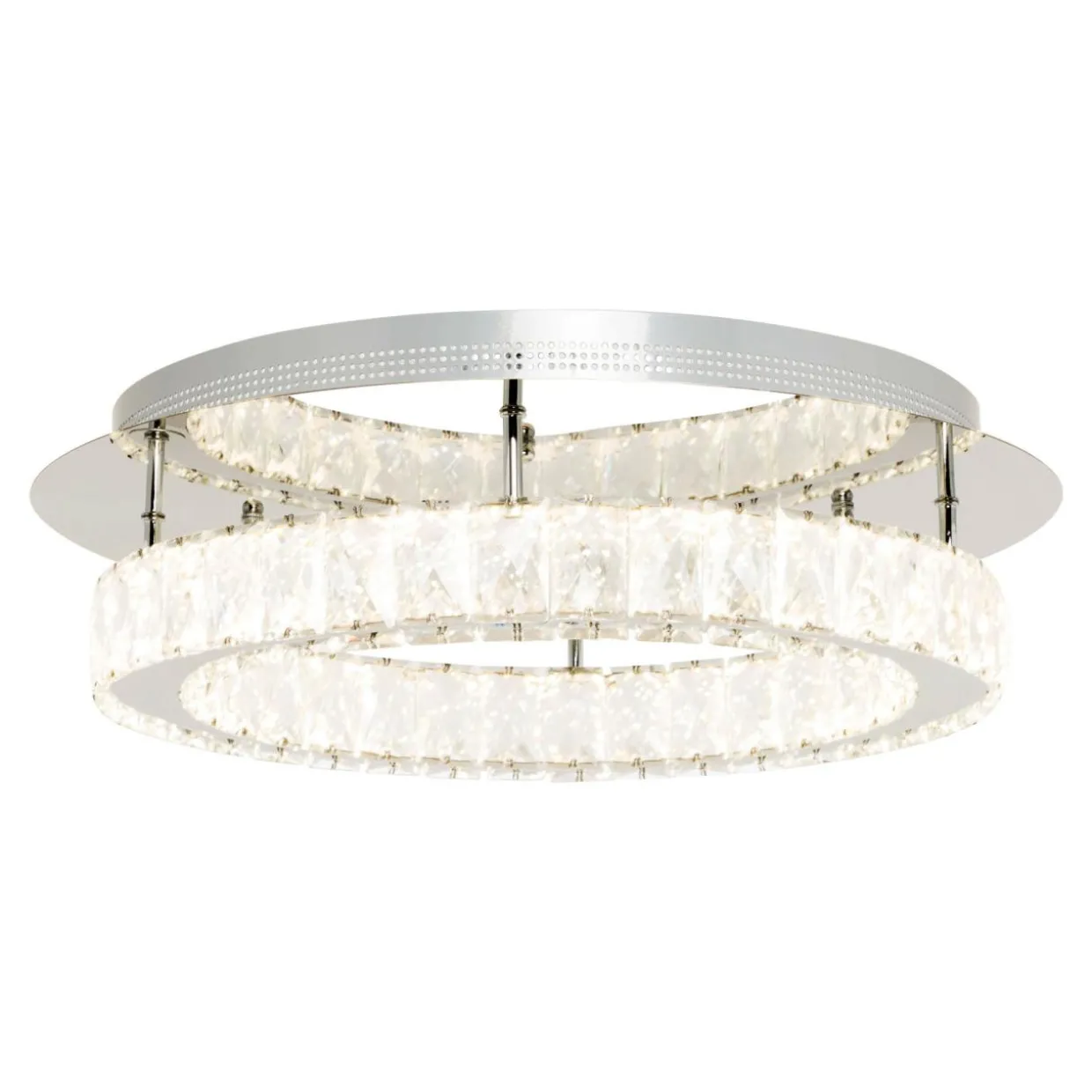 Srebrna kolorystyka podstawy oraz elementów ozdobnych lampy wzbogacona chromowanym wykończeniem urozmaica wizualnie wnętrze pomieszczenia, czyniąc jest jaśniejszym i większym.