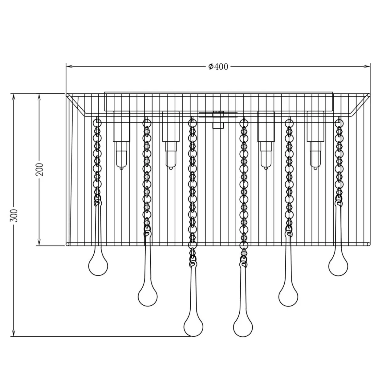 Podstawa lampy została wykonana z metalu z chromowanym wykończeniem, natomiast abażur stanowi misterną konstrukcję, na którą składają się cienkie metalowe druciki oraz sznurki z tkaniny. Całości dopełniają szklane paciorki.