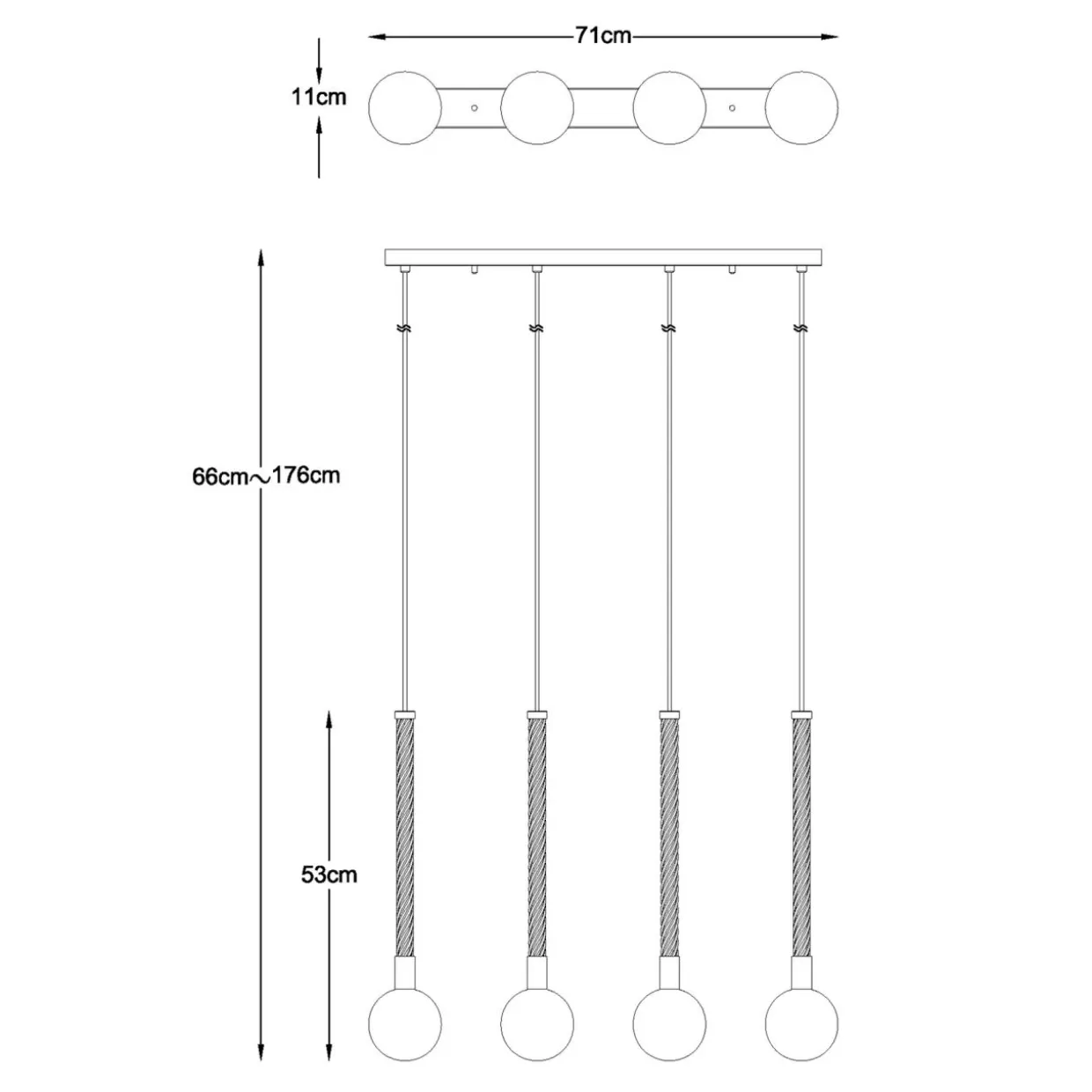 Lampa wisząca MIDA posiada oprawę przystosowaną dla 4 żarówek o mocy maksymalnej 4W.
