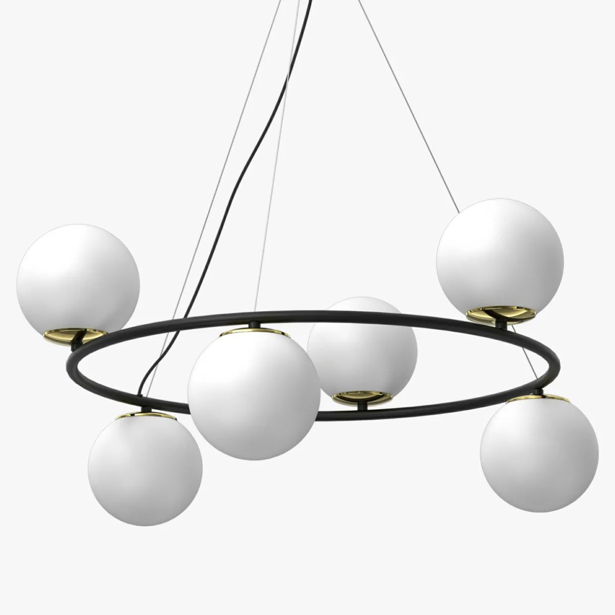 Jej czarna oprawa o kształcie okręgu została udekorowana 4 kulistymi kloszami, które rozświetlą przestrzeń i dodadzą pięknego wykończenia wnętrzu Twojego mieszkania.