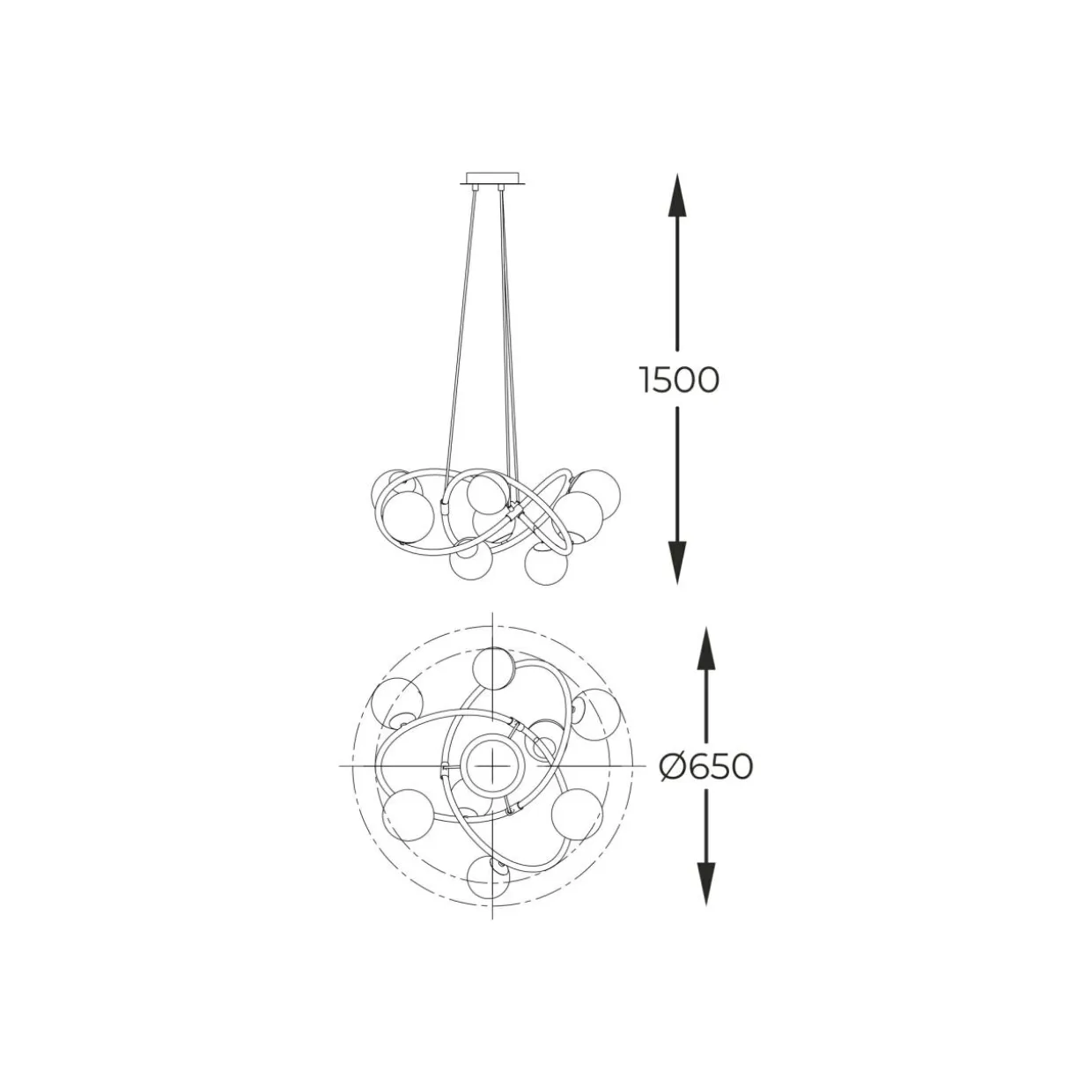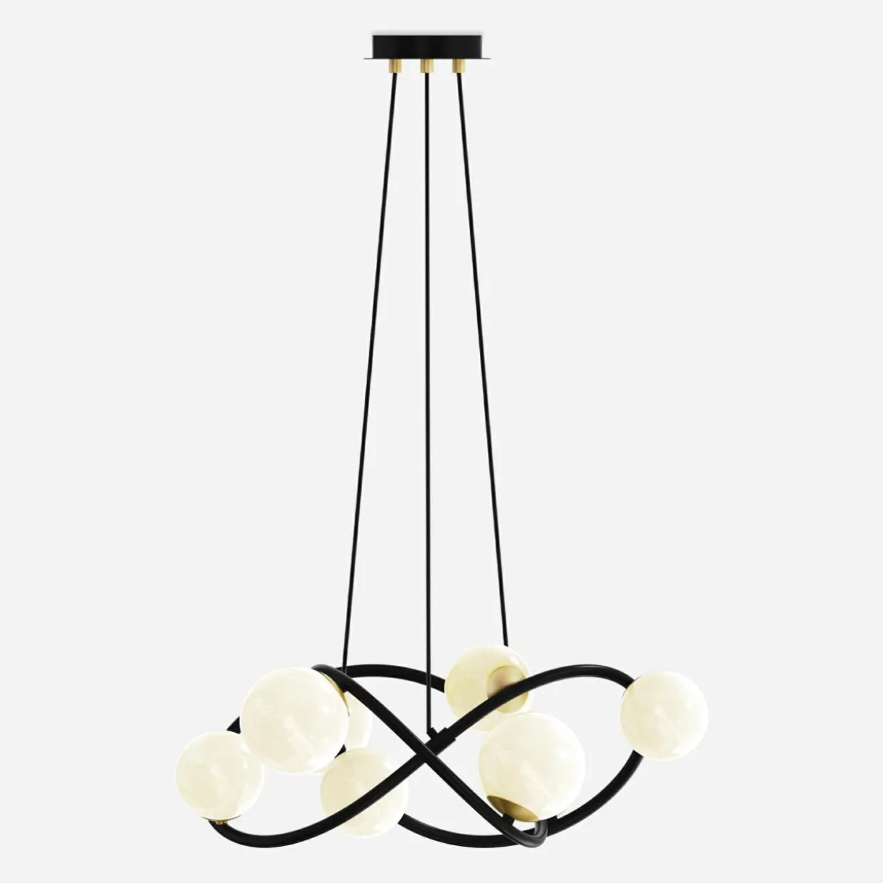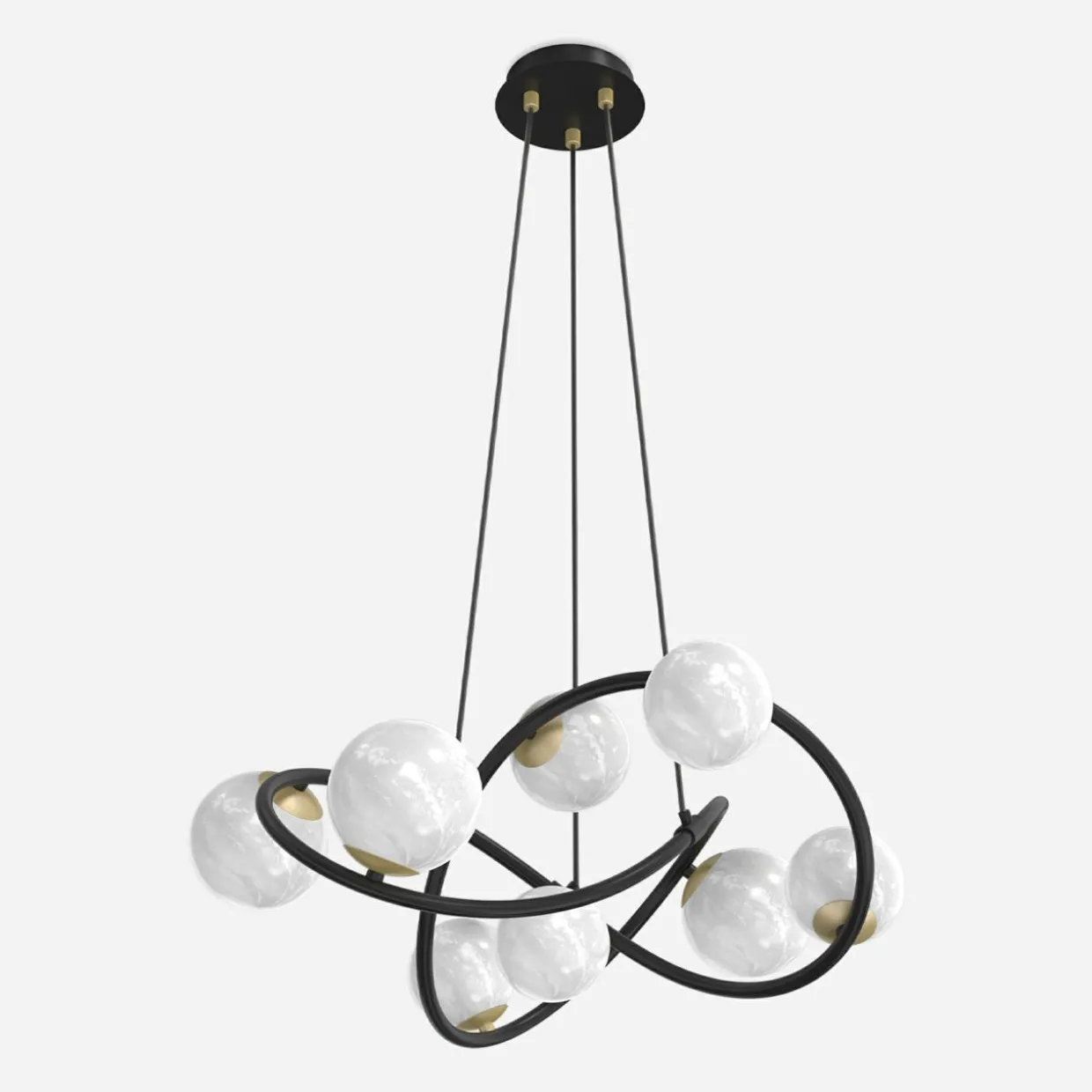 Jej czarna oprawa o kształcie wstęgi Möbiusa została upiększona aż 8 kulistymi kloszami o wykończeniu w perłowej bieli i matowym złocie.