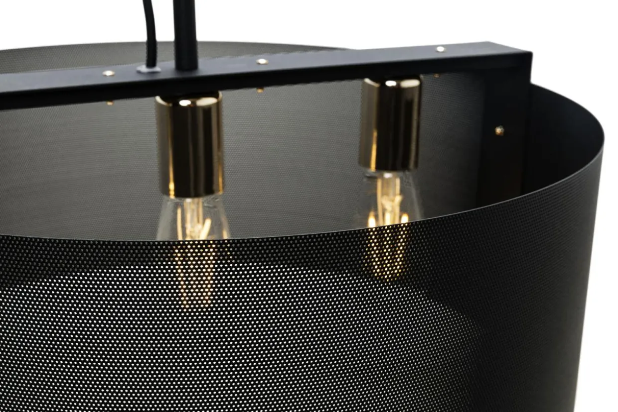 Na uwagę zasługuje ozdobny klosz w czarnym kolorze, wykonany z cienkiej metalowej siateczki, który w oryginalny sposób rozprasza światło. Podstawa lampy również wykonana została z metalu.