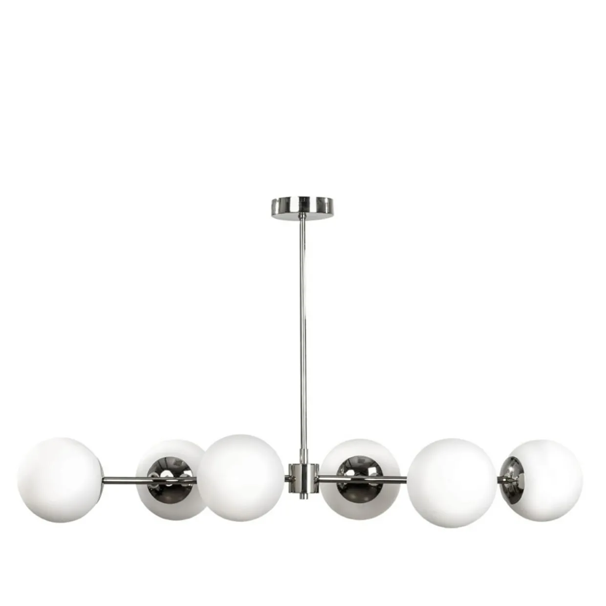 - 6 kulistych kloszy oraz prosty, geometryczny design metalowych ramion sprawiają, że możesz dopasować lampy do wnętrz nowoczesnych, minimalistycznych, nowojorskich i skandynawskich.