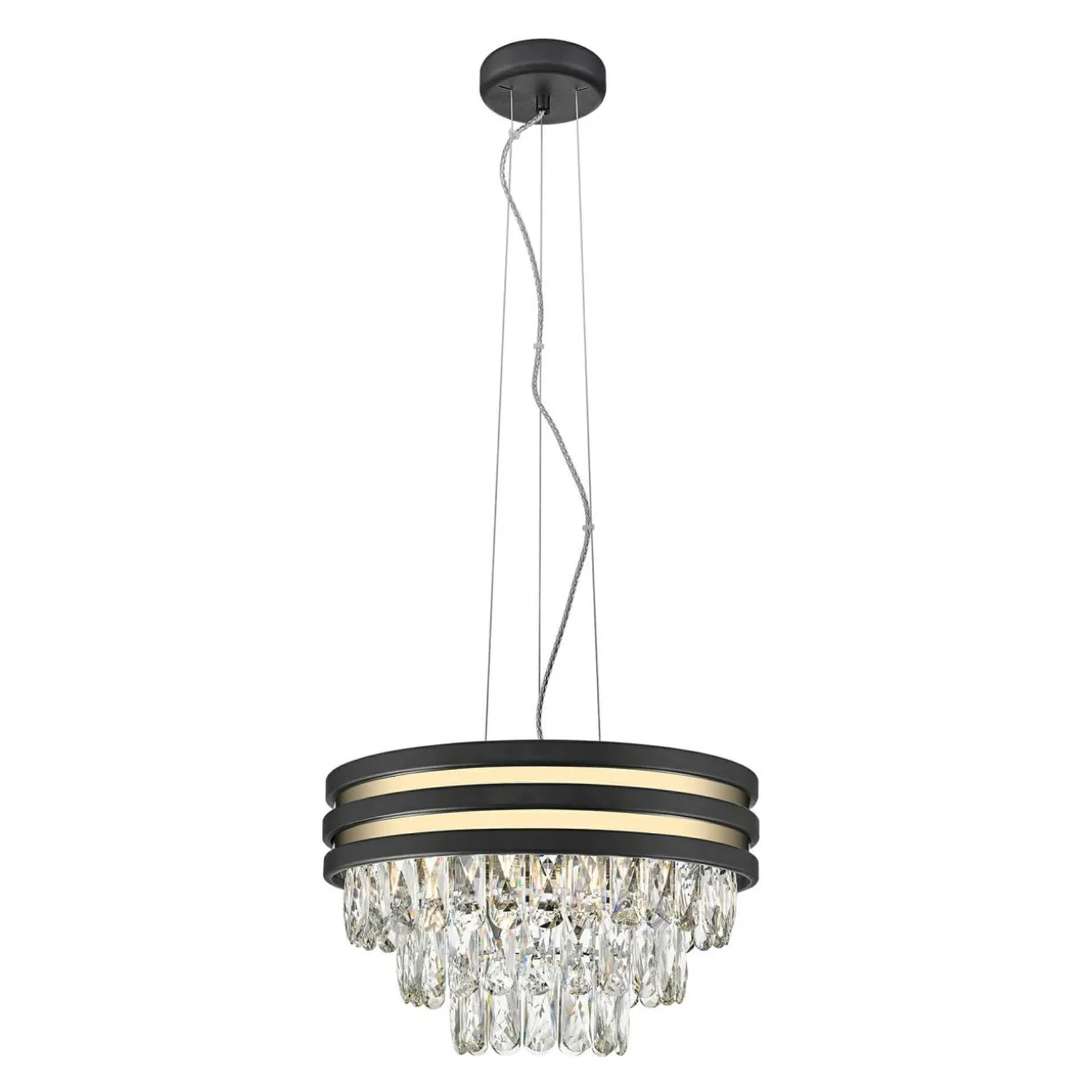 Podstawa lampy to osobliwe połączenie złotego oraz czarnego wybarwienia. Całości dopełnia matowe wykończenie, które świetnie sprawdza się w bardziej stonowanych aranżacjach.