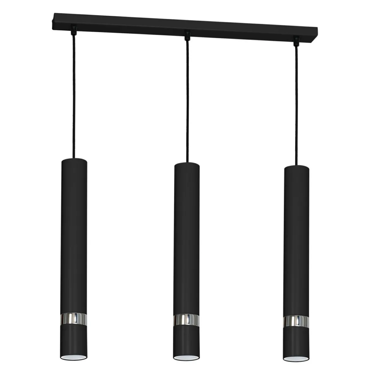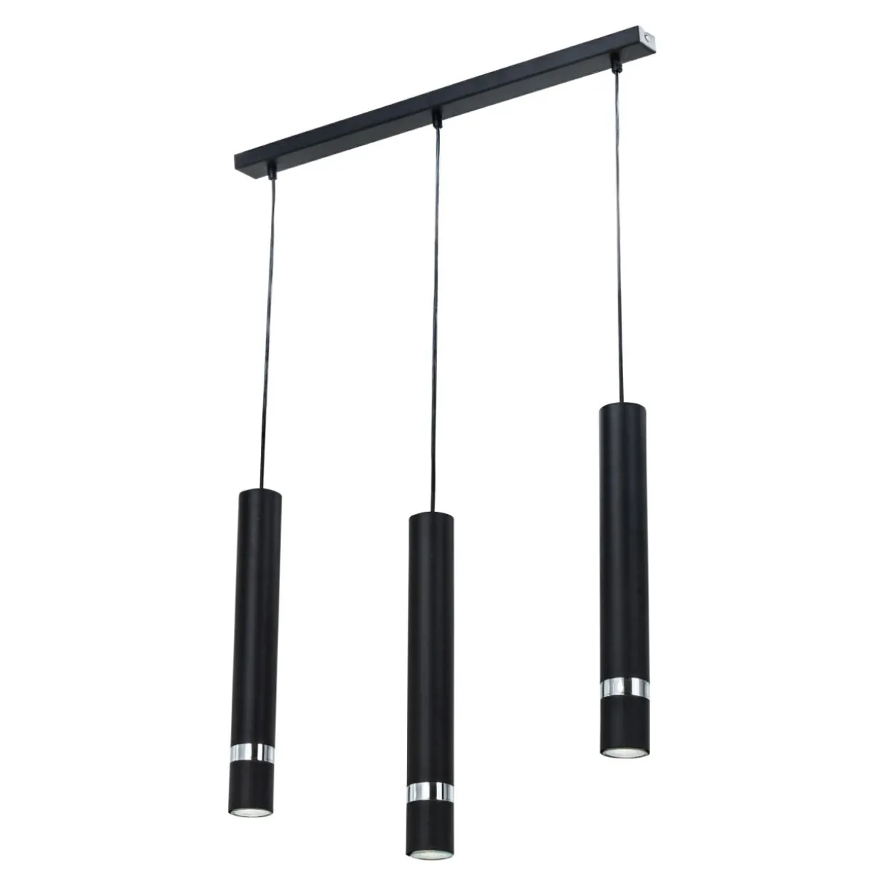 Zawieszone równolegle na ustawionej poziomo listwie trzy źródła światła dodają charakteru i dopełniają wystroju wnętrza. Obudowa każdego z nich, w kształcie skierowanego pionowo w dół walca została wykonana z lakierowanego metalu. Umieszczona w środku żarówka typu GU10 rozświetla pomieszczenie światłem o mocy 8W.