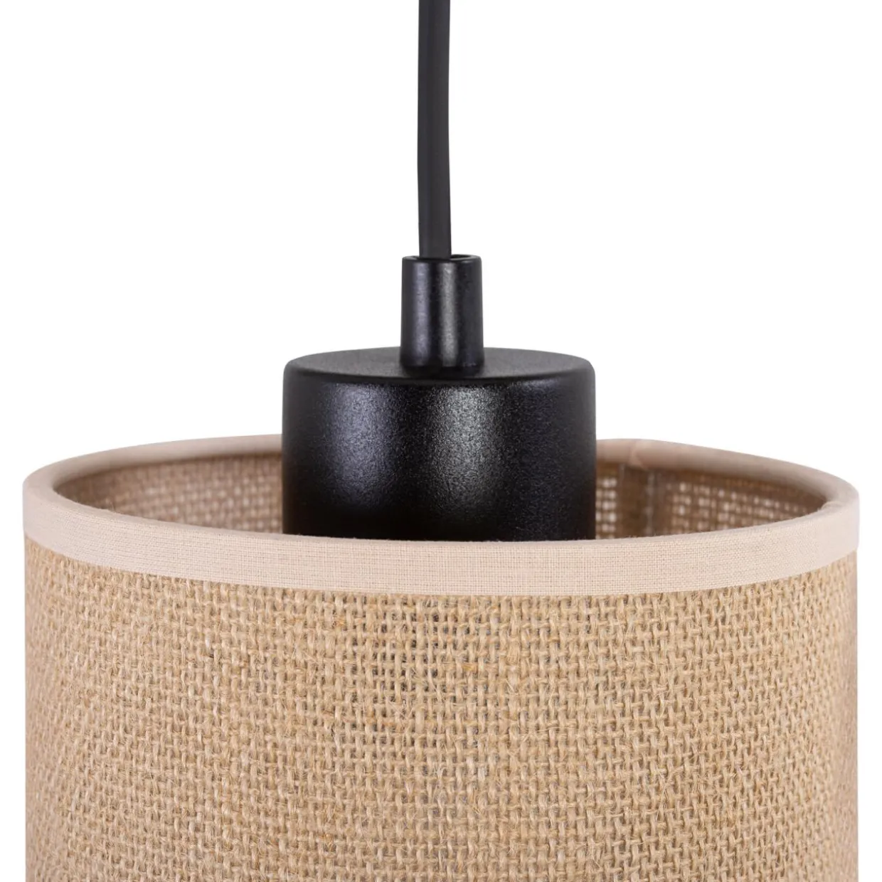 - Na szczególną uwagę zasługuje jutowy materiał, który został wykorzystany przy wykonaniu abażuru. Wprowadza przytulny klimat, który w zależności od wystroju wnętrza wprowadza naturalność lub egzotykę.