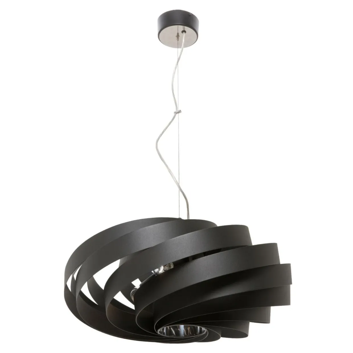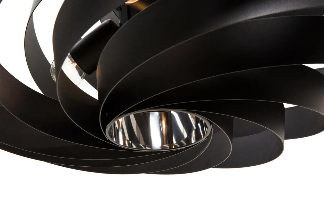 Szczególną uwagę zwraca szeroki klosz, wewnątrz którego umiejscowiona jest oprawa przeznaczona dla czterech żarówek z tradycyjnym gwintem E27.