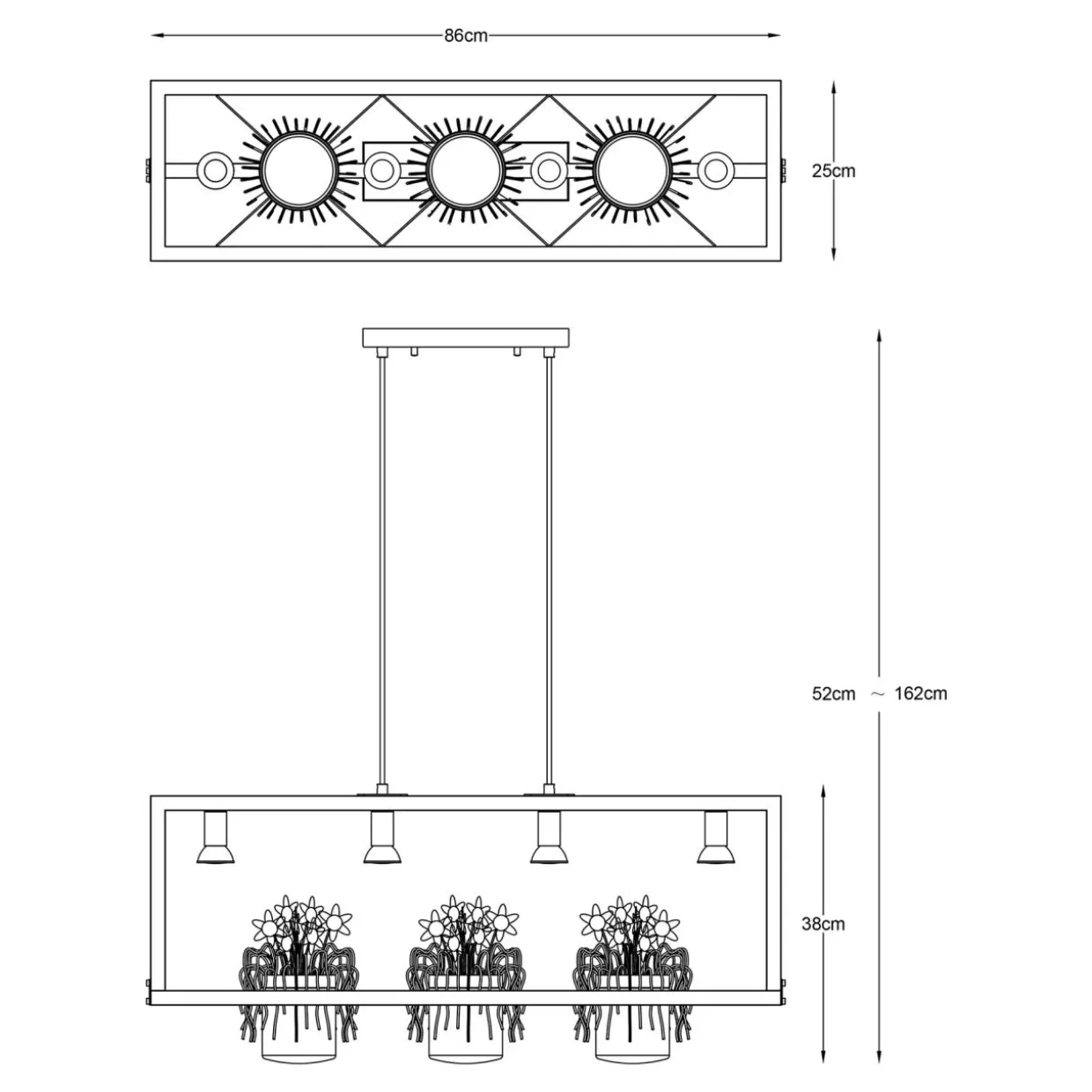 - Lampa PLANTER idealnie wpisze się w pokój wypełniony kwiatami, egzotycznymi roślinami i dekoracjami z motywem dżungli.