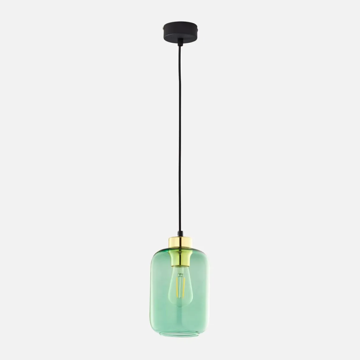 - Transparentny klosz w zielonym odcieniu pozwala dopasować żarówkę dekoracyjną.