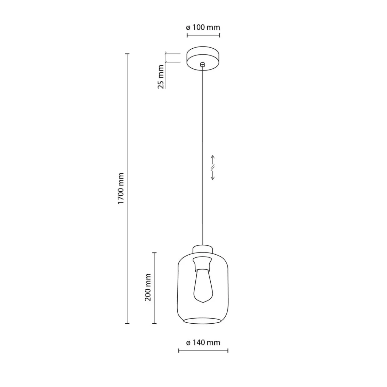 Lampa posiada regulację wysokości zawieszenia. Jej maksymalna długość to 170 cm.