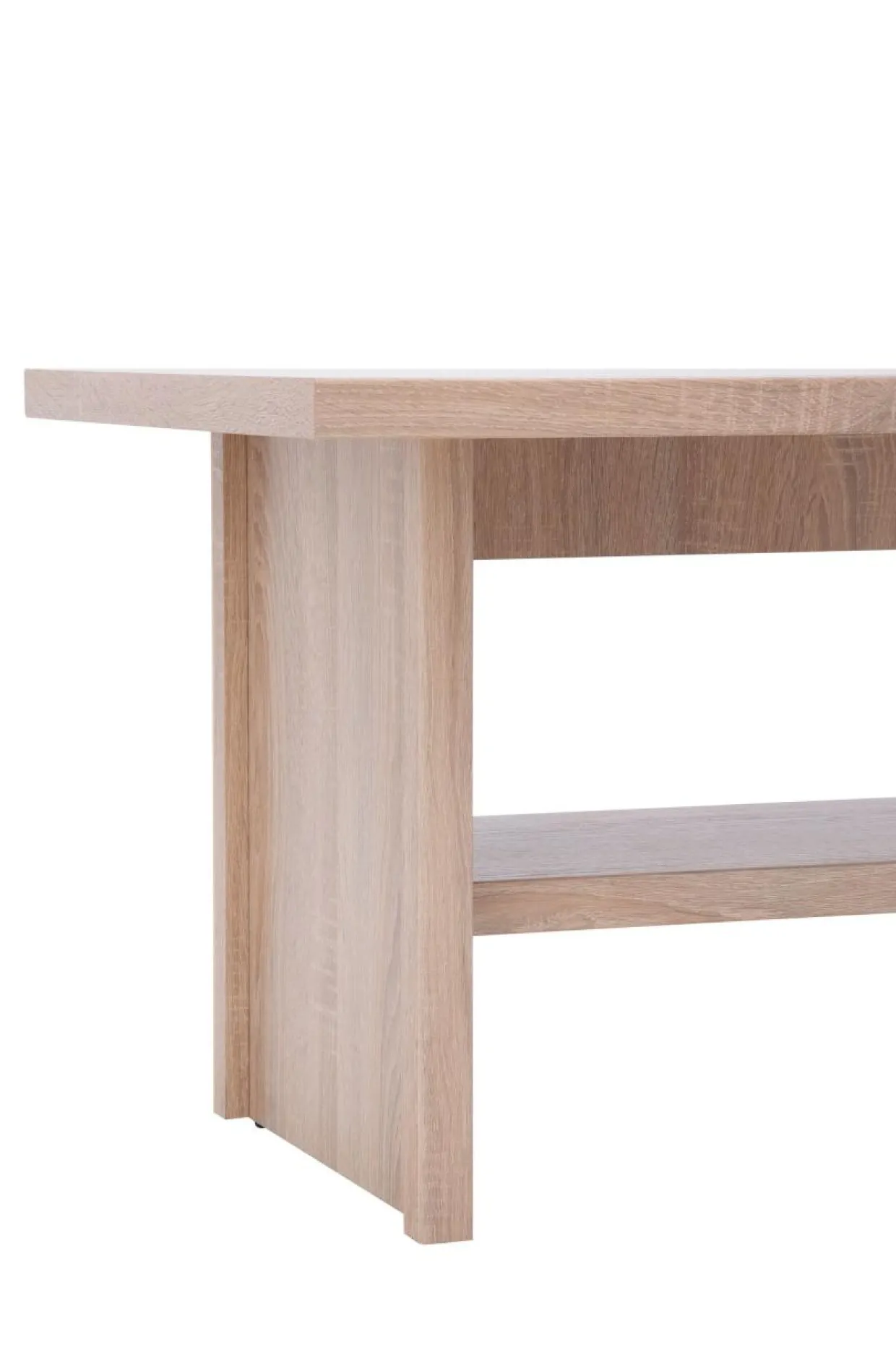 Ława NORTON cechuje się prostą minimalistyczną formą, która sprawia, że mebel pasuje do nowoczesnych wnętrz. Laminat w jasnym kolorze dębu sonoma, przypominający drewno, wprowadzi do pomieszczenia przytulny klimat. Ławę NORTON bez problemu dopasujesz do każdej kolekcji. Spora szerokość i dobrze dobrana wysokość umożliwi ustawienie ławy przy dużym narożniku lub komplecie wypoczynkowym.