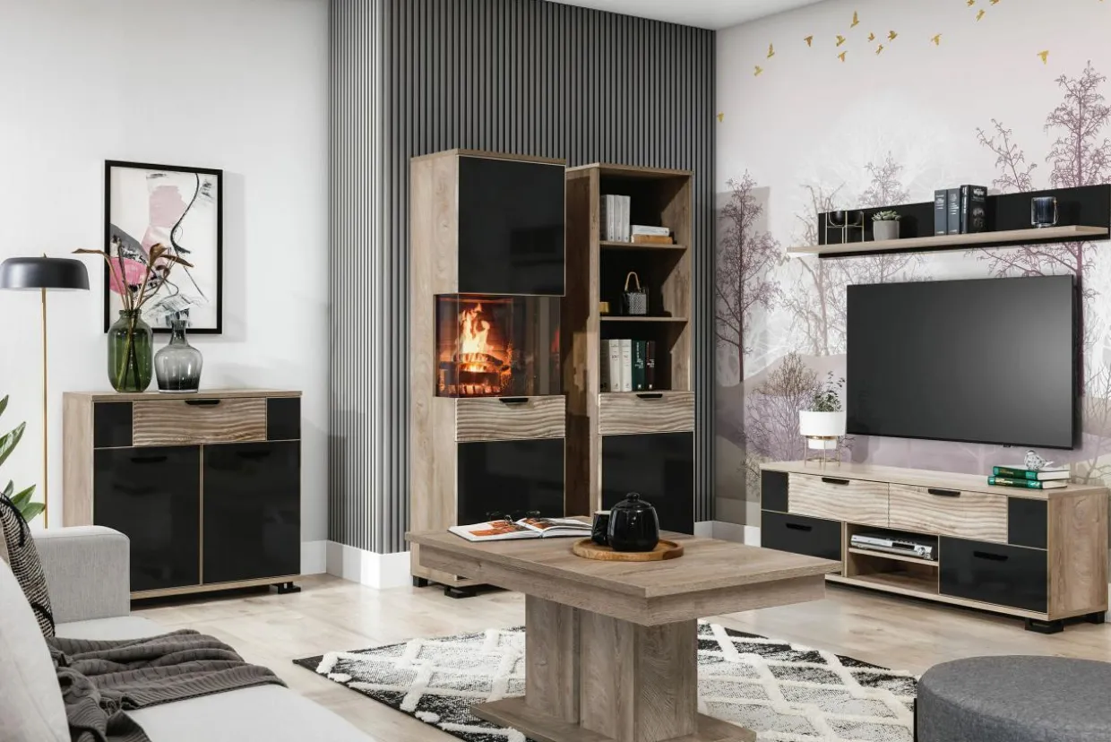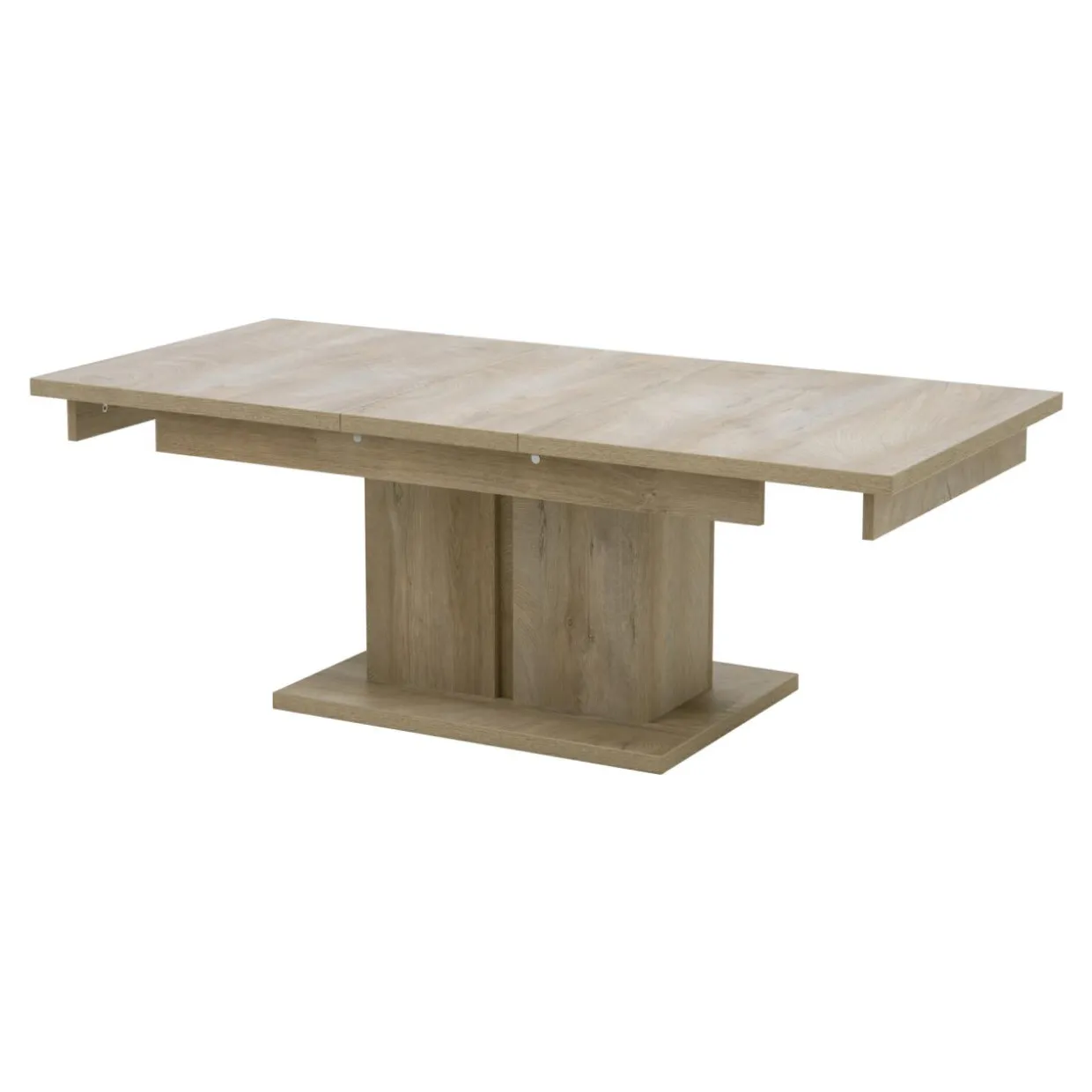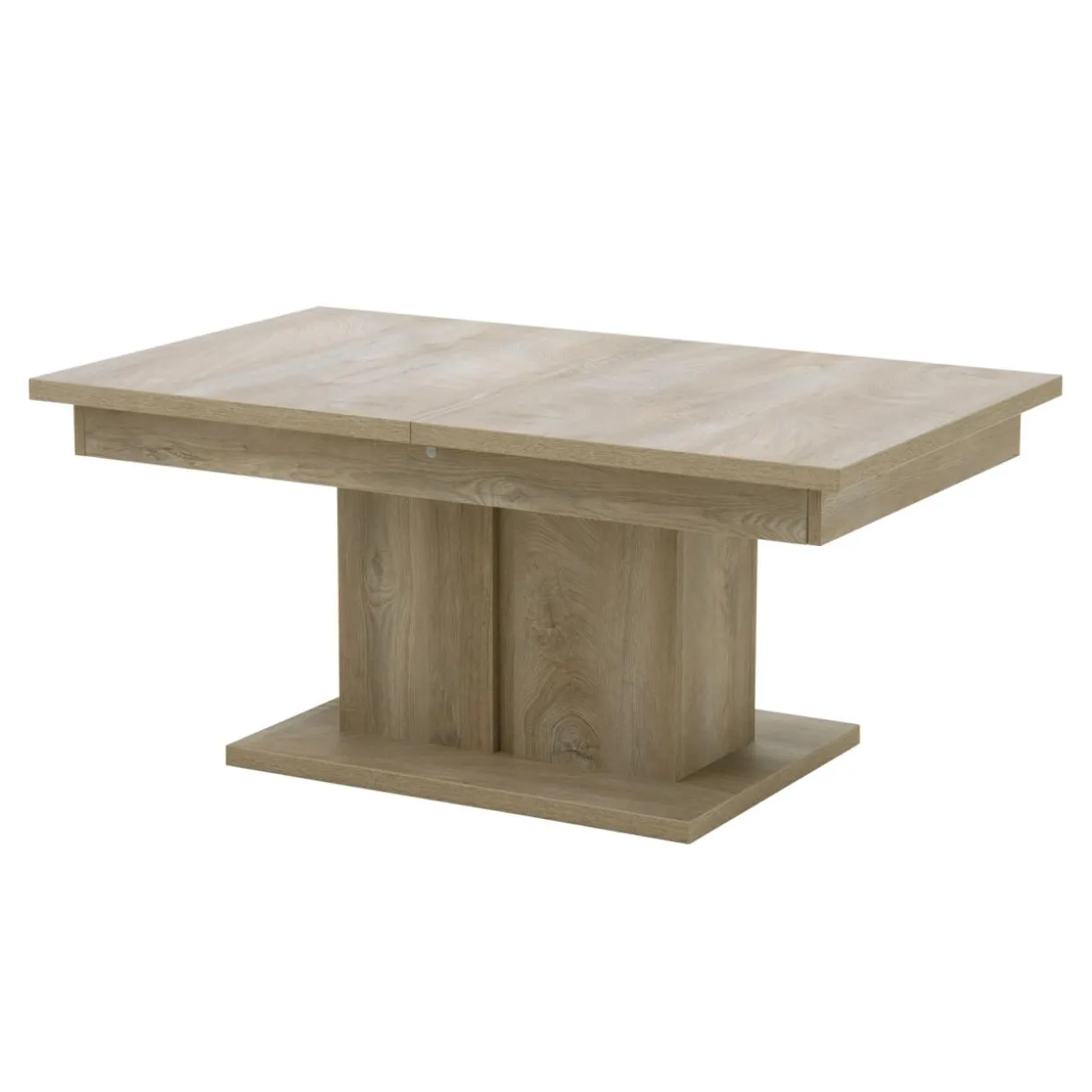 - Ława wykonana jest z płyt meblowych i wykończona laminatem, imitującym ciepły odcień drewna.
