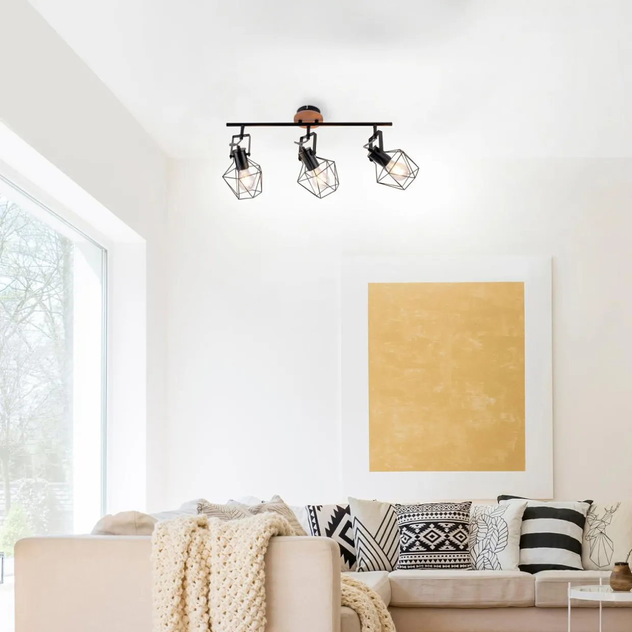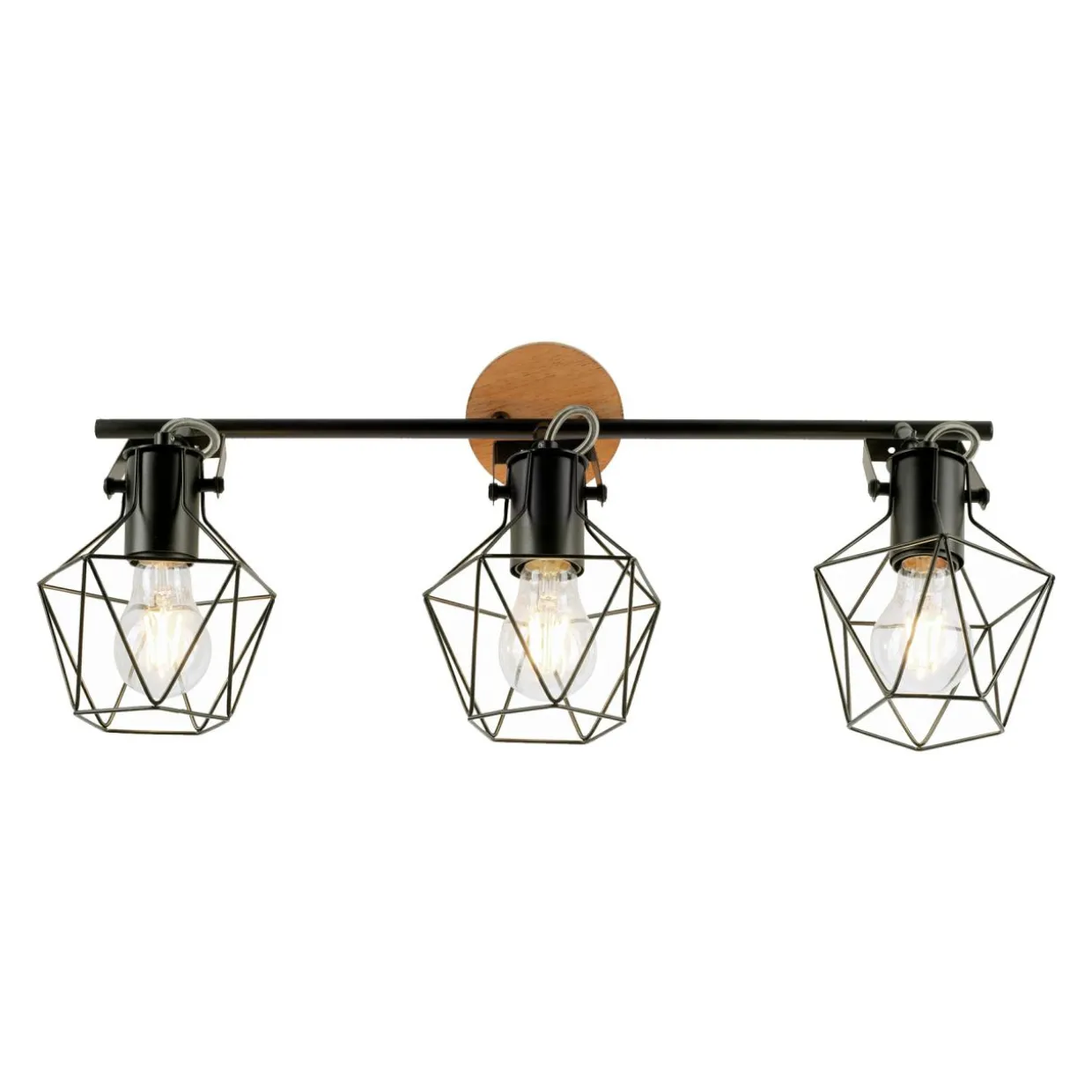 Posiada niecodzienny design, który łączy metalową obudowę z drewnianymi elementami. Ocieplają one nieco ocieplają design lampy oraz dodają odrobiny naturalności do surowej, czarnej oprawy.