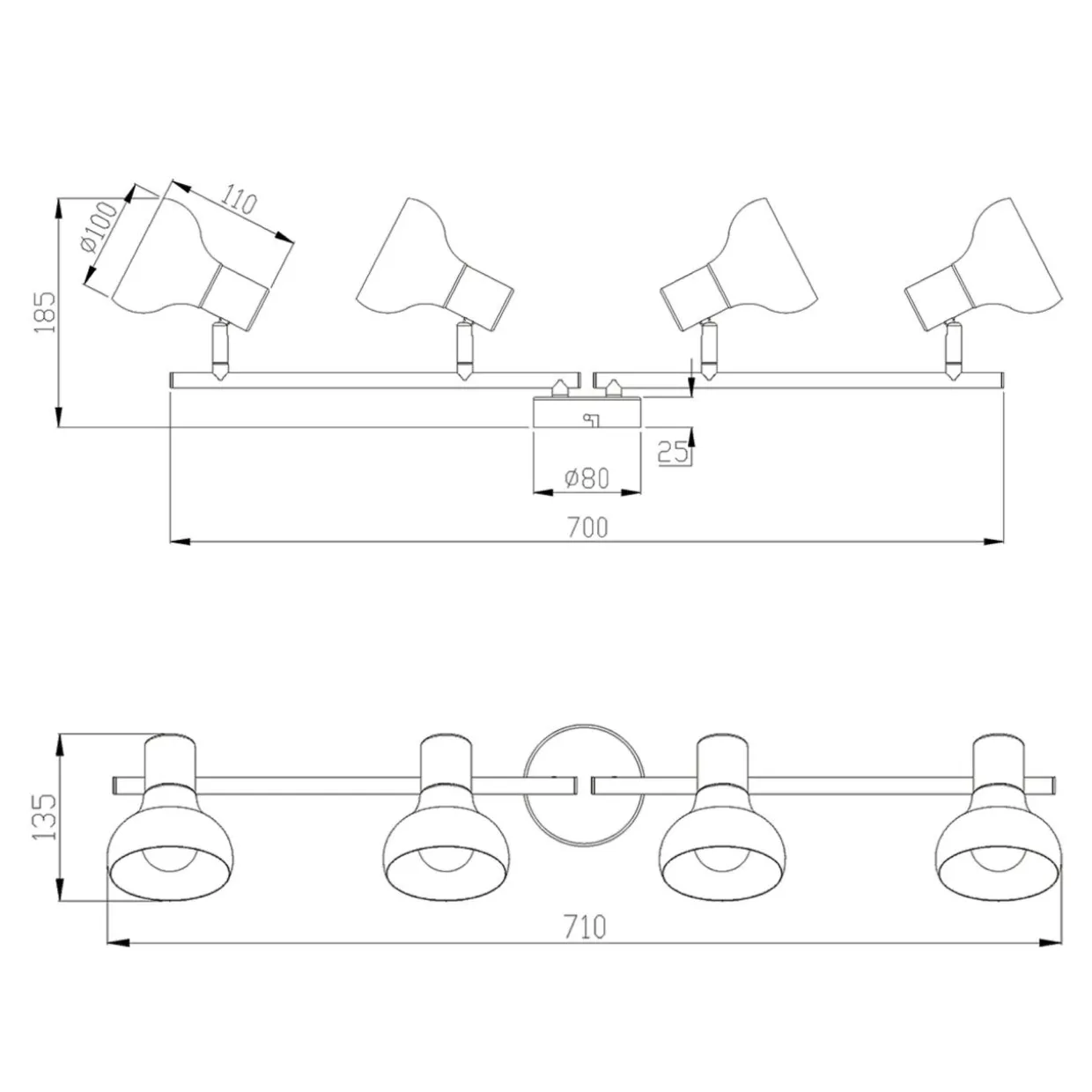 Listwa posiada 2 ruchome ramiona, którymi możesz dodatkowo ustawić położenie kloszy.