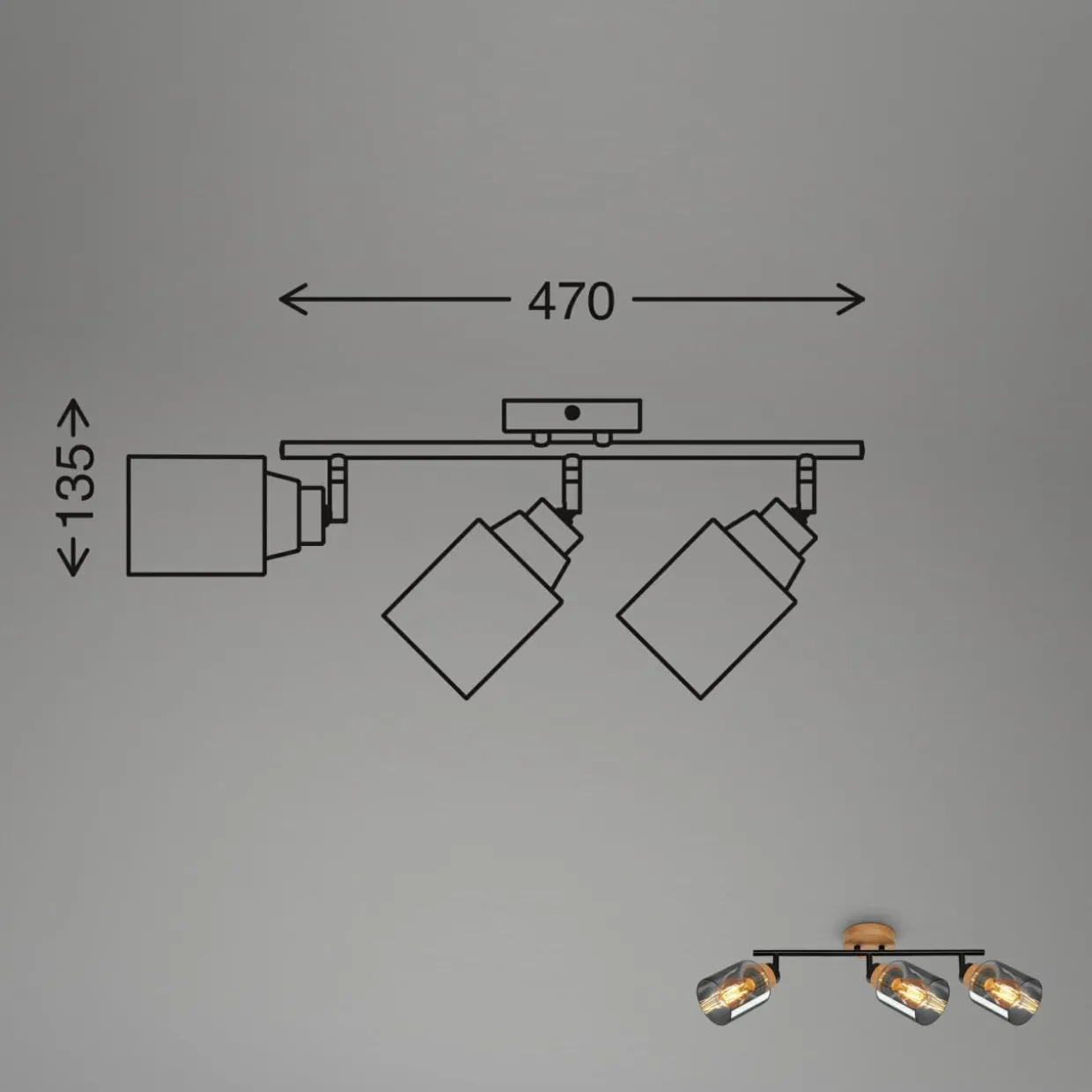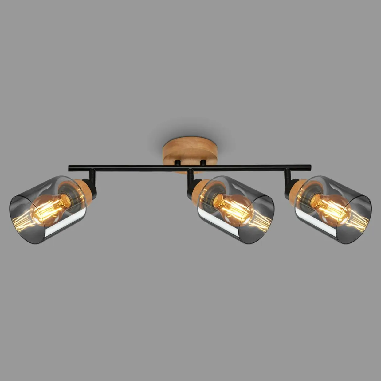 Listwa podwieszana 3 klosze czarna jasne drewno HEMA
