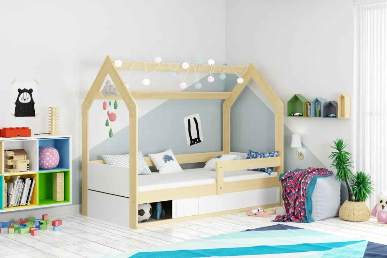 Łóżko HAVEN posiada ramę w kształcie domku – wspólnie z maluchem możecie ozdobić ją kolorowymi lampkami i ręcznie robionymi dekoracjami.