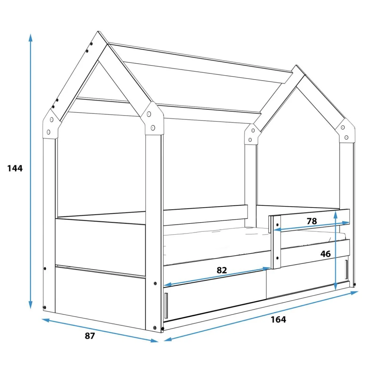 - Schowek w dolnej części będzie wygodnym miejscem do przechowywania dodatkowej pościeli lub ulubionych zabawek.
