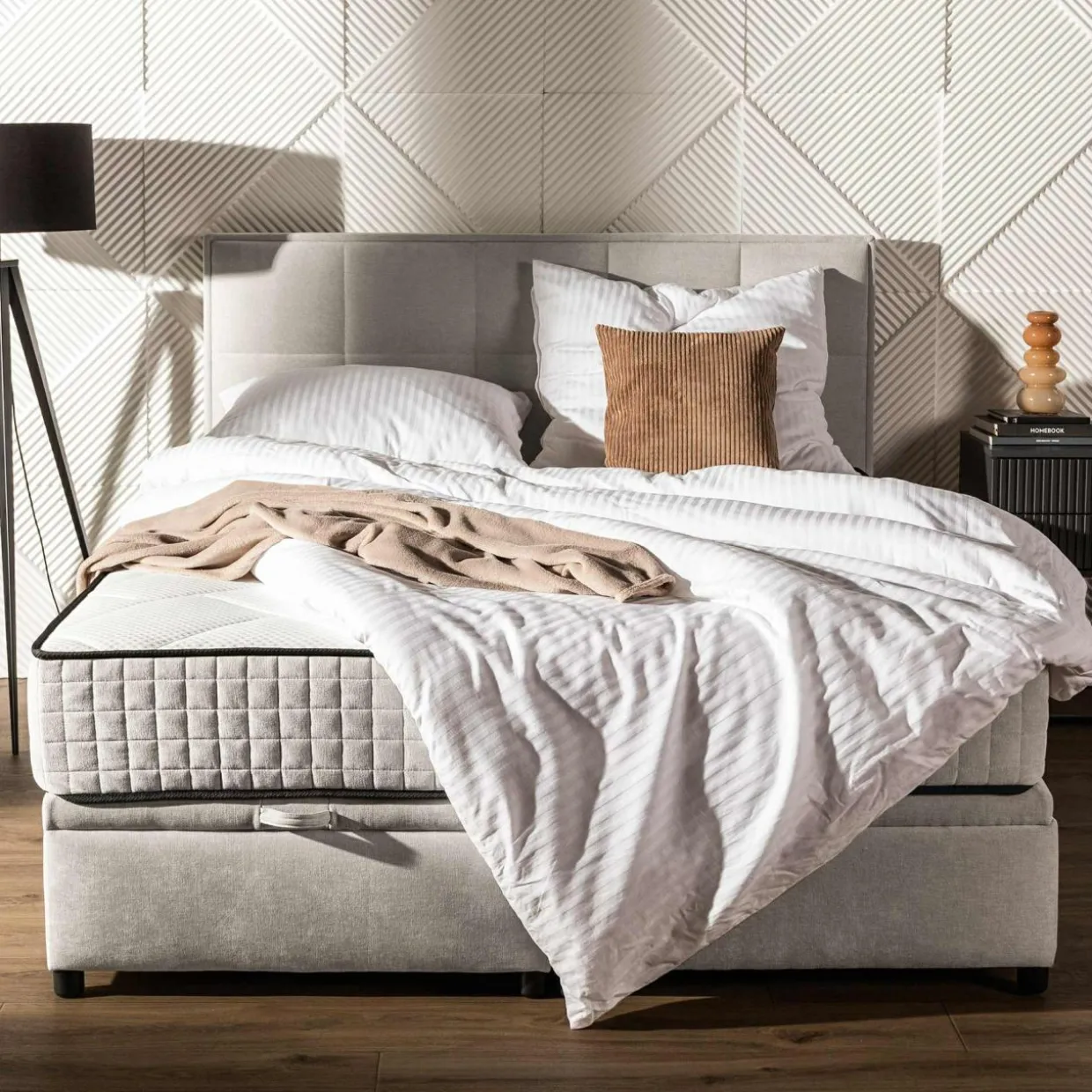 Łóżko kontynentalne jasnoszare LAURITA SQUARE 140×200 cm + materac