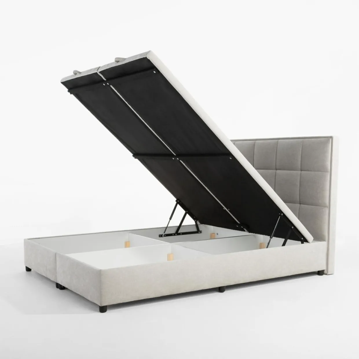 Łóżko kontynentalne jasnoszare LAURITA SQUARE 140×200 cm