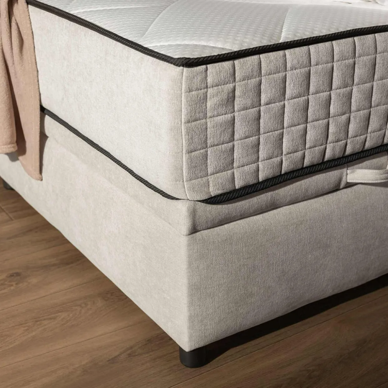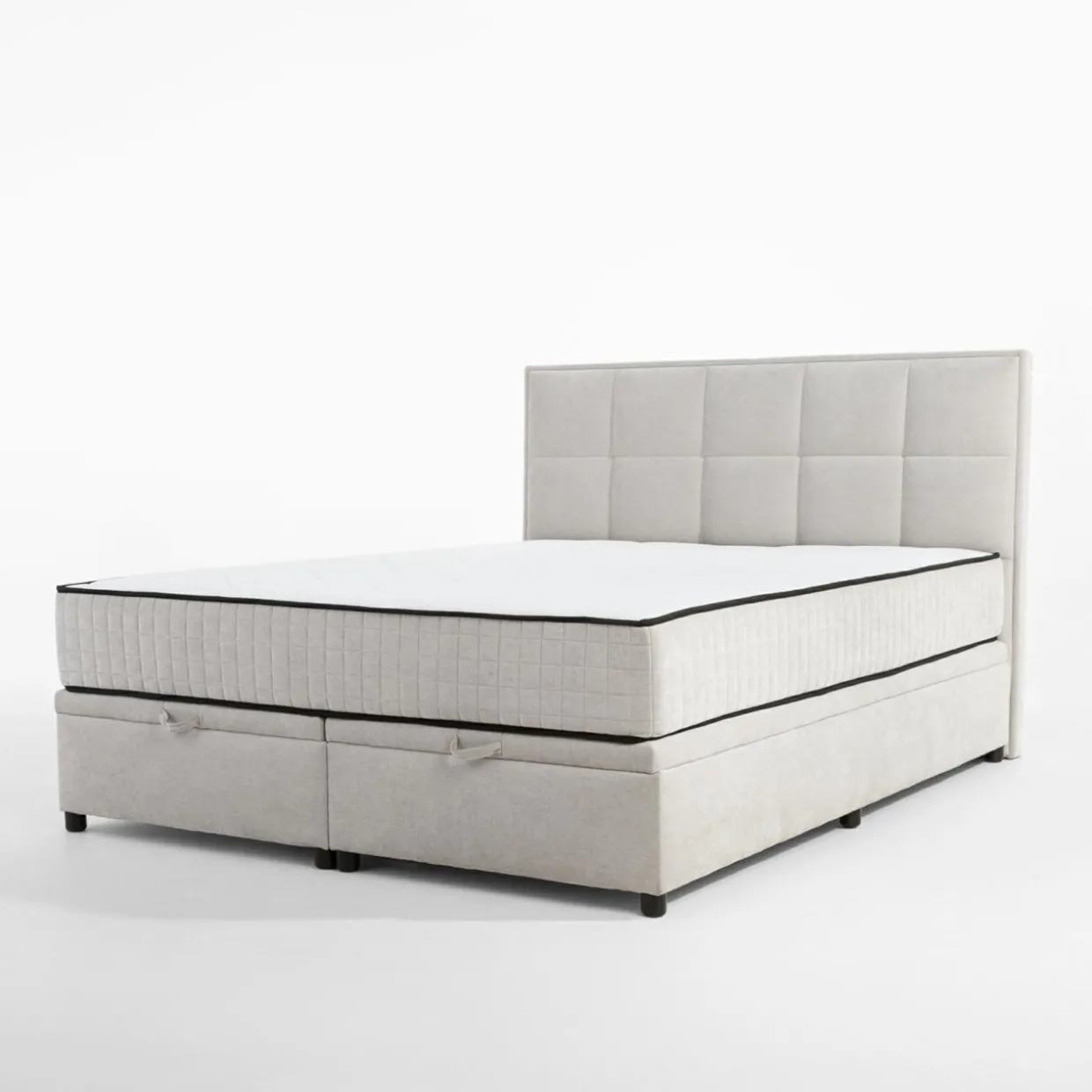 Łóżko kontynentalne jasnoszare LAURITA SQUARE 180×200 cm + materac