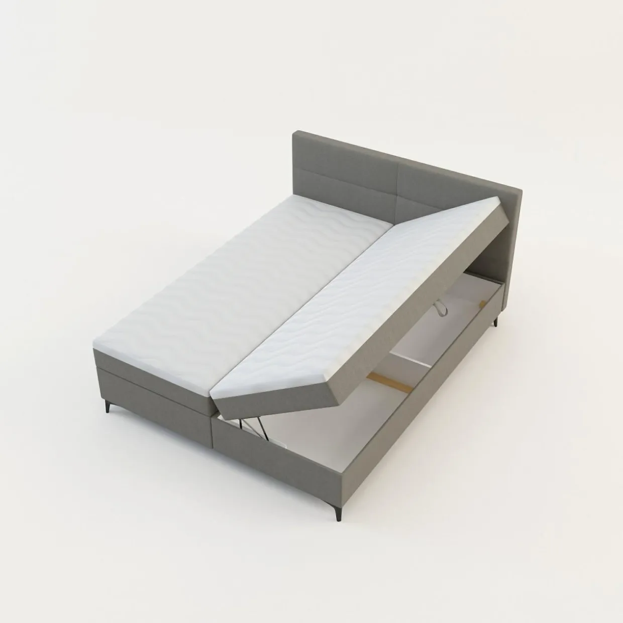 - Boki materaca zostały pokryte tą samą tkaniną co rama łóżka, przez co całość prezentuje się estetycznie.