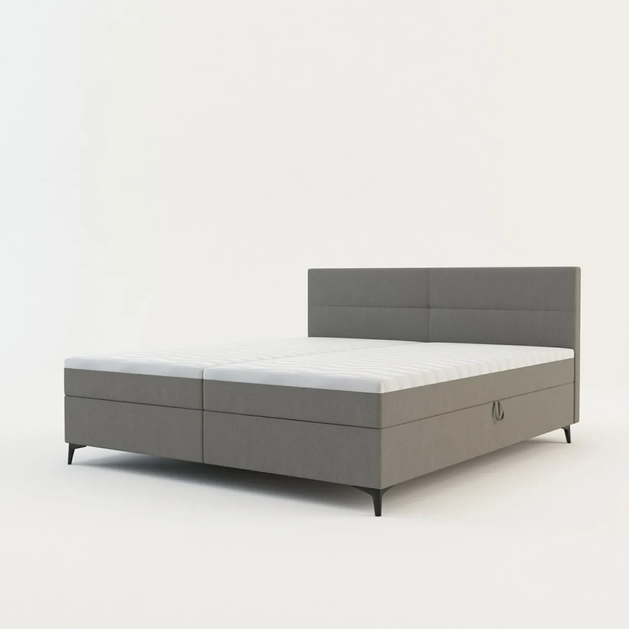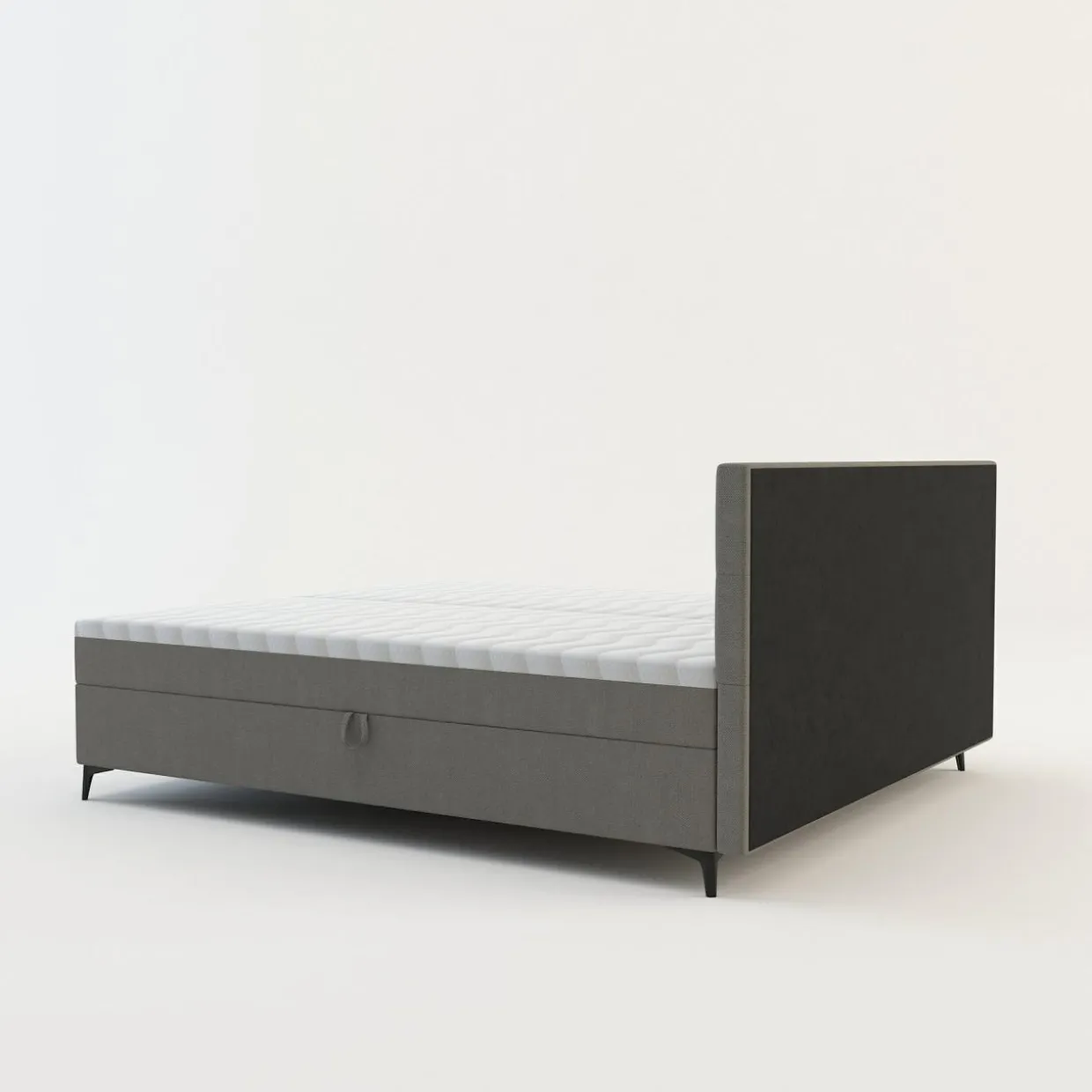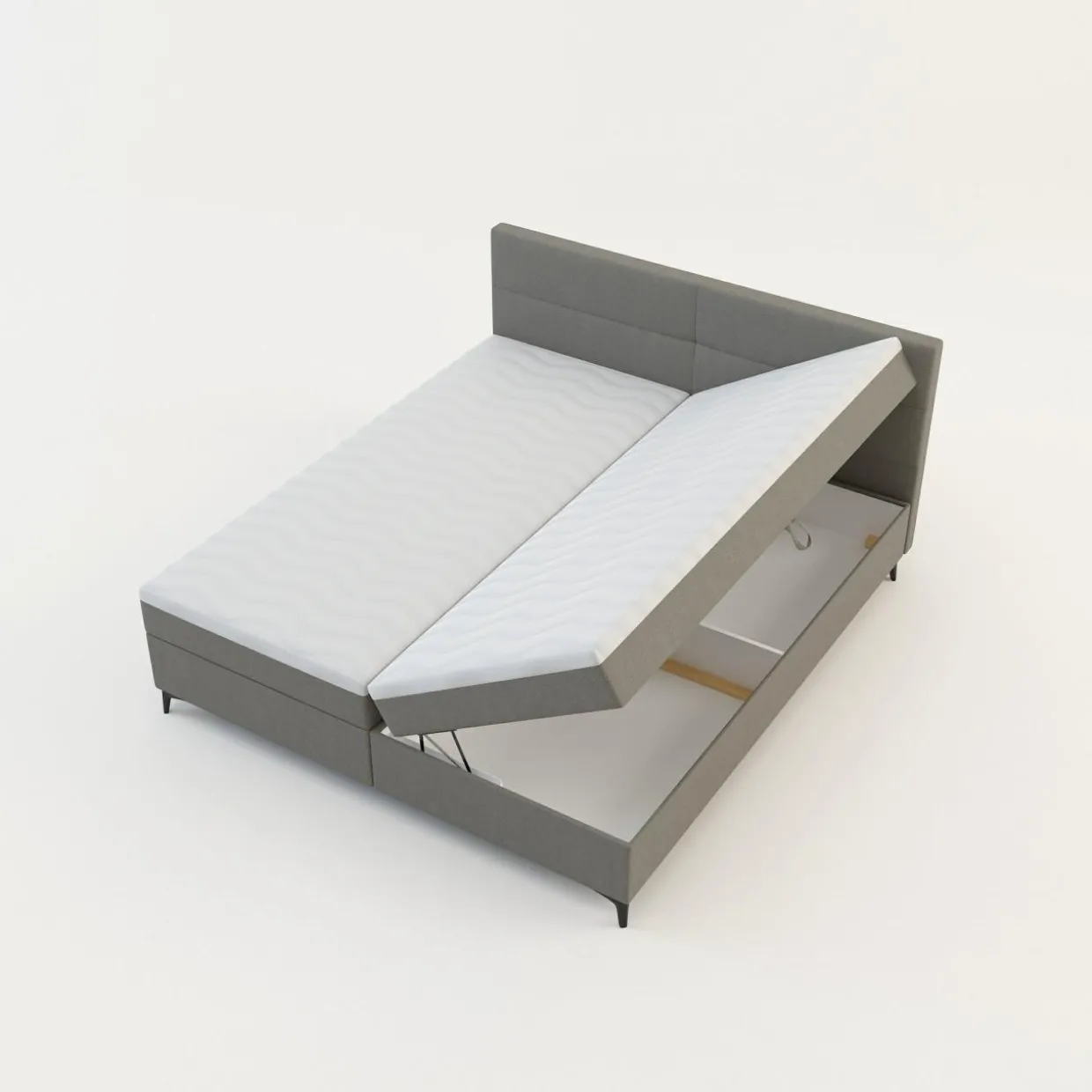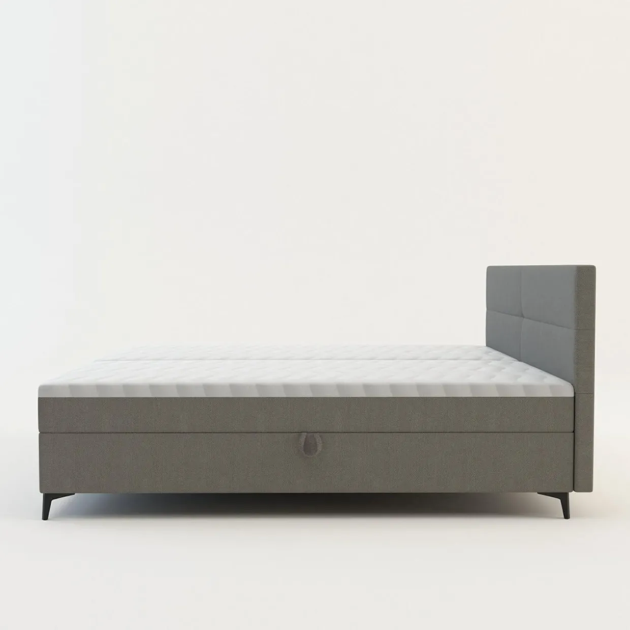 - Boki materaca zostały pokryte tą samą tkaniną co rama łóżka, przez co całość prezentuje się estetycznie.