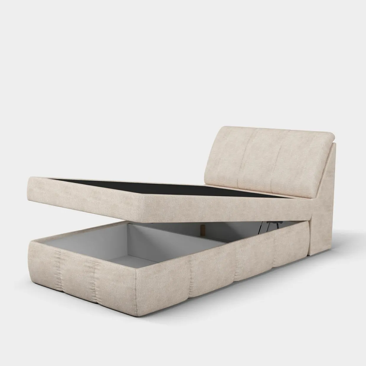 - W skrzyni łóżka znajduje się pojemnik na pościel.