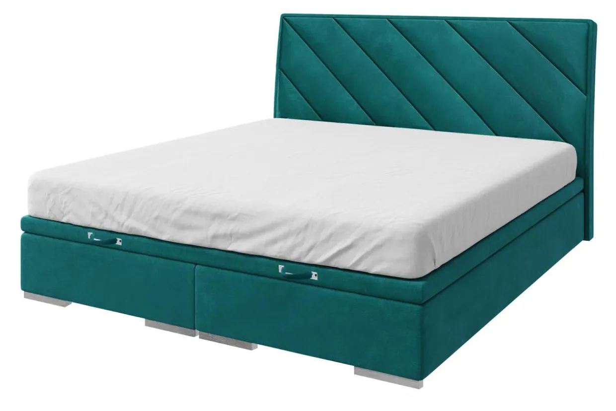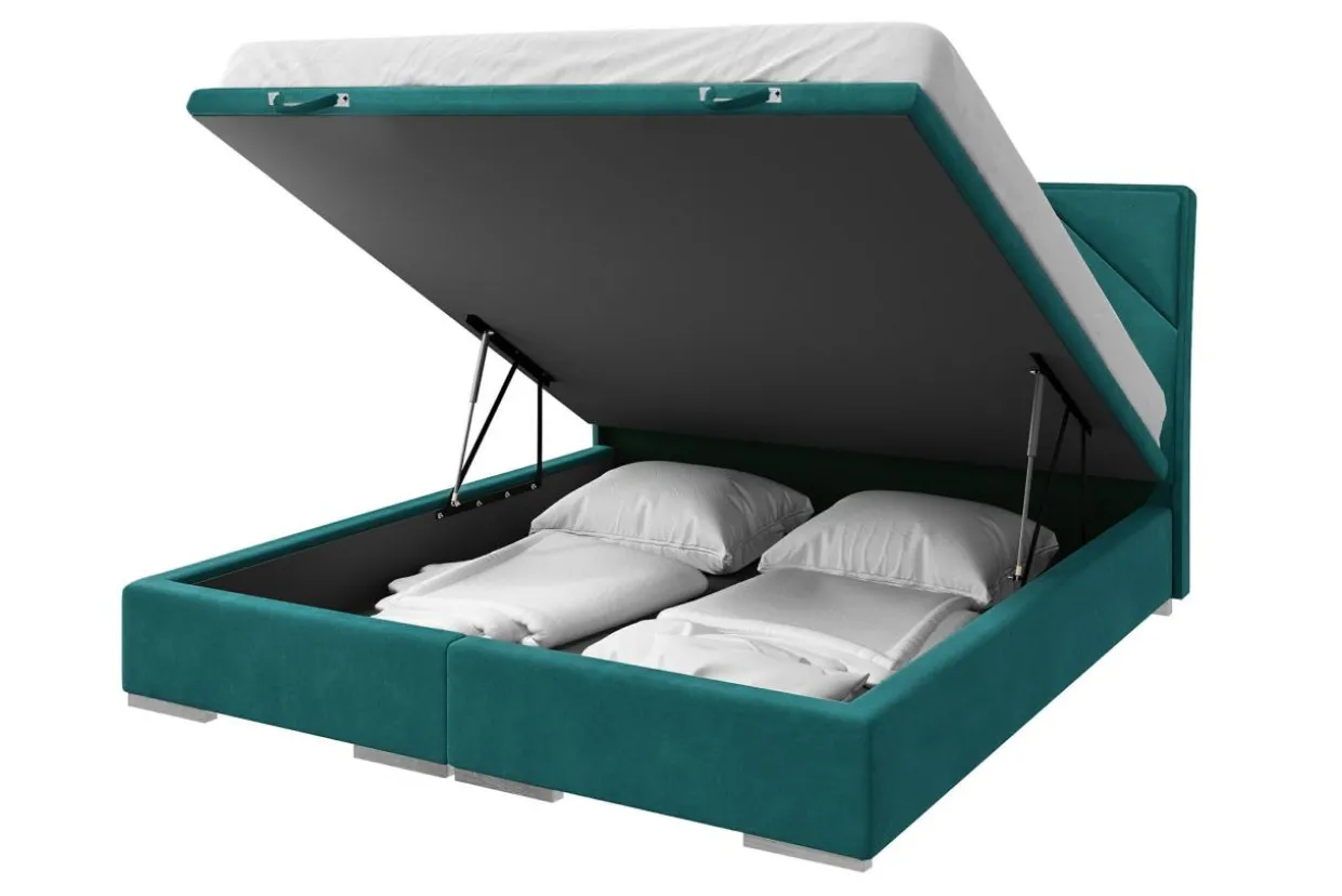 - Łóżko zostało wykończone tkaniną MAGIC VELVET w morskim kolorze.
