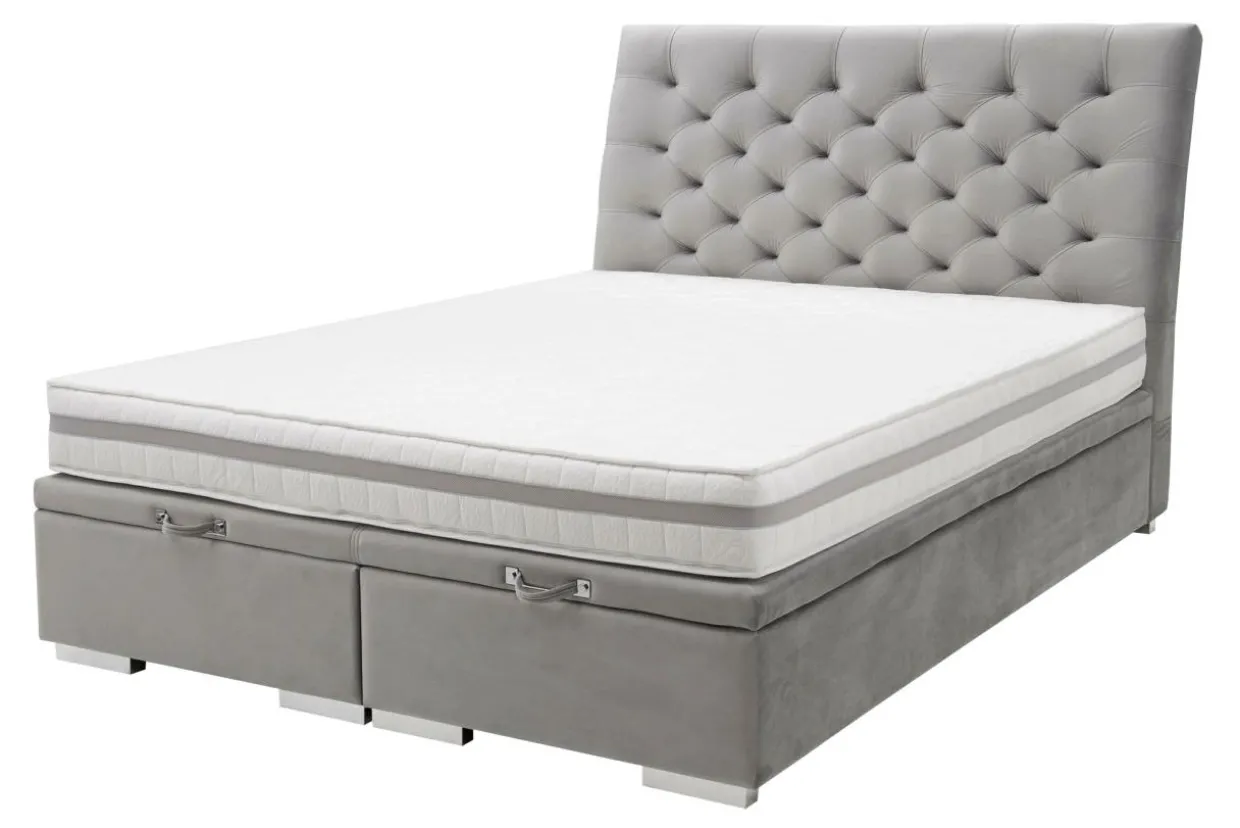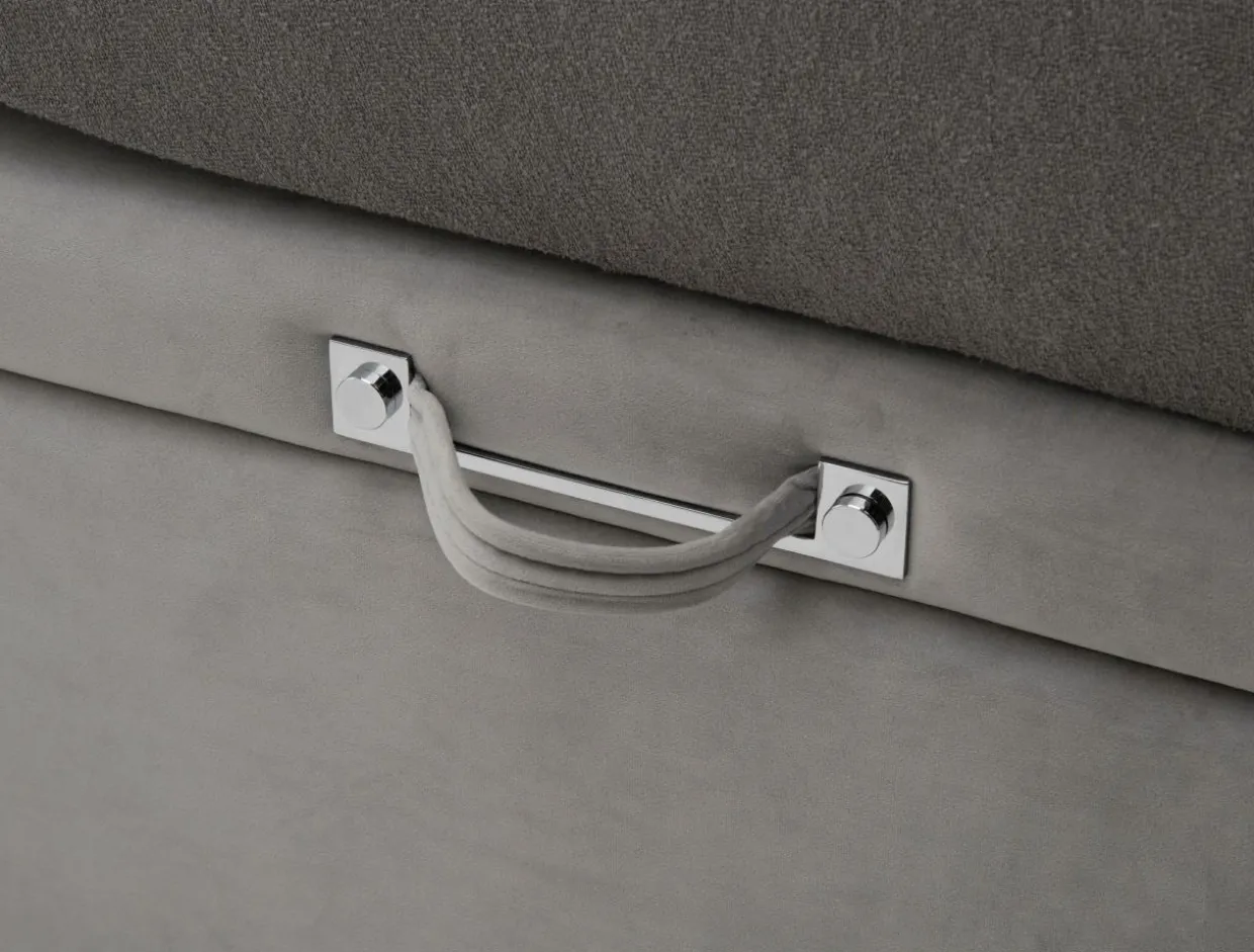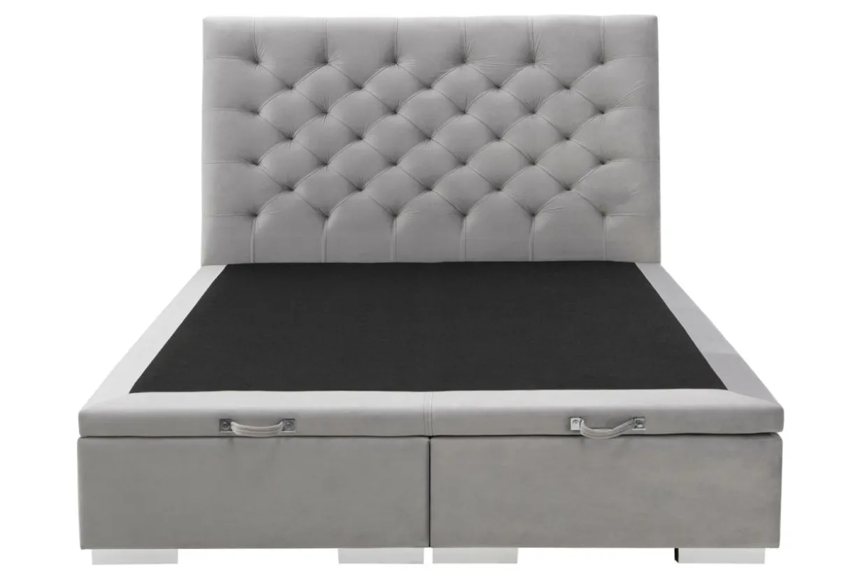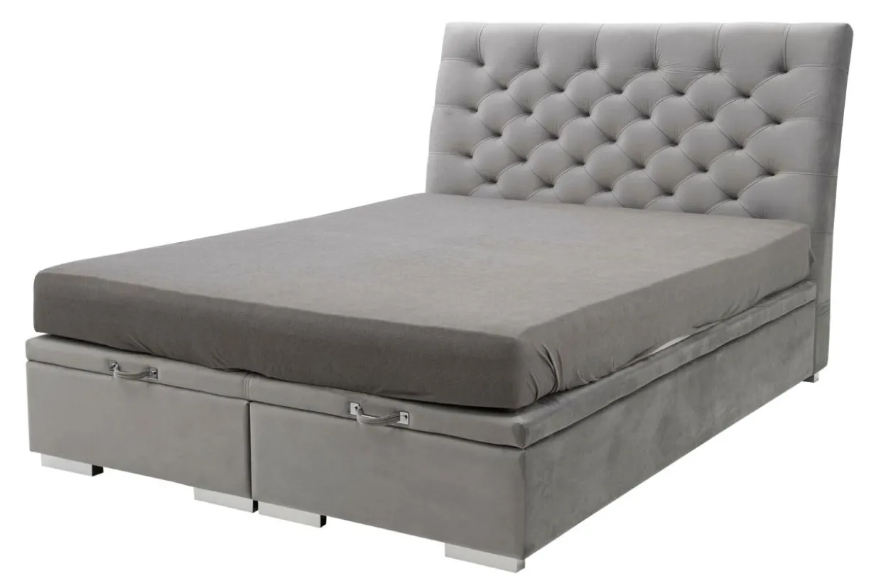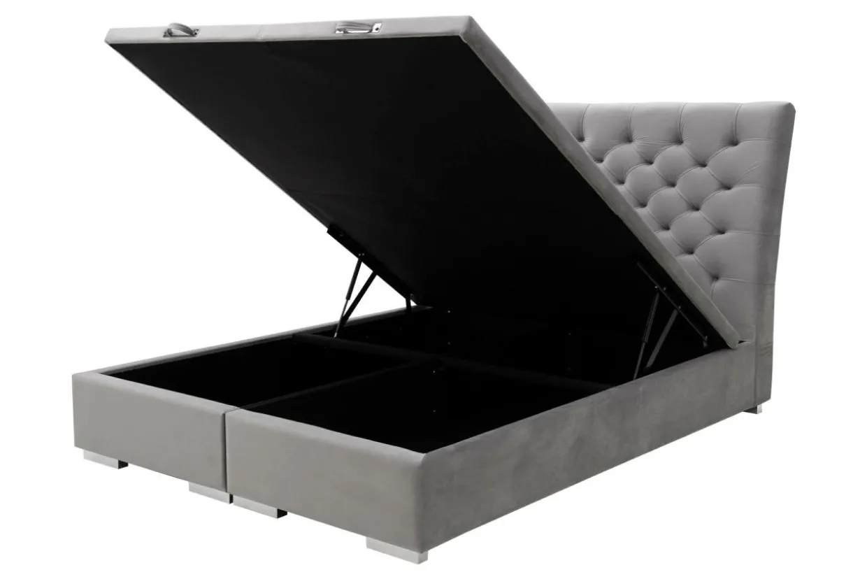 - Łóżko zostało wykończone tkaniną MAGIC VELVET w szarym kolorze.