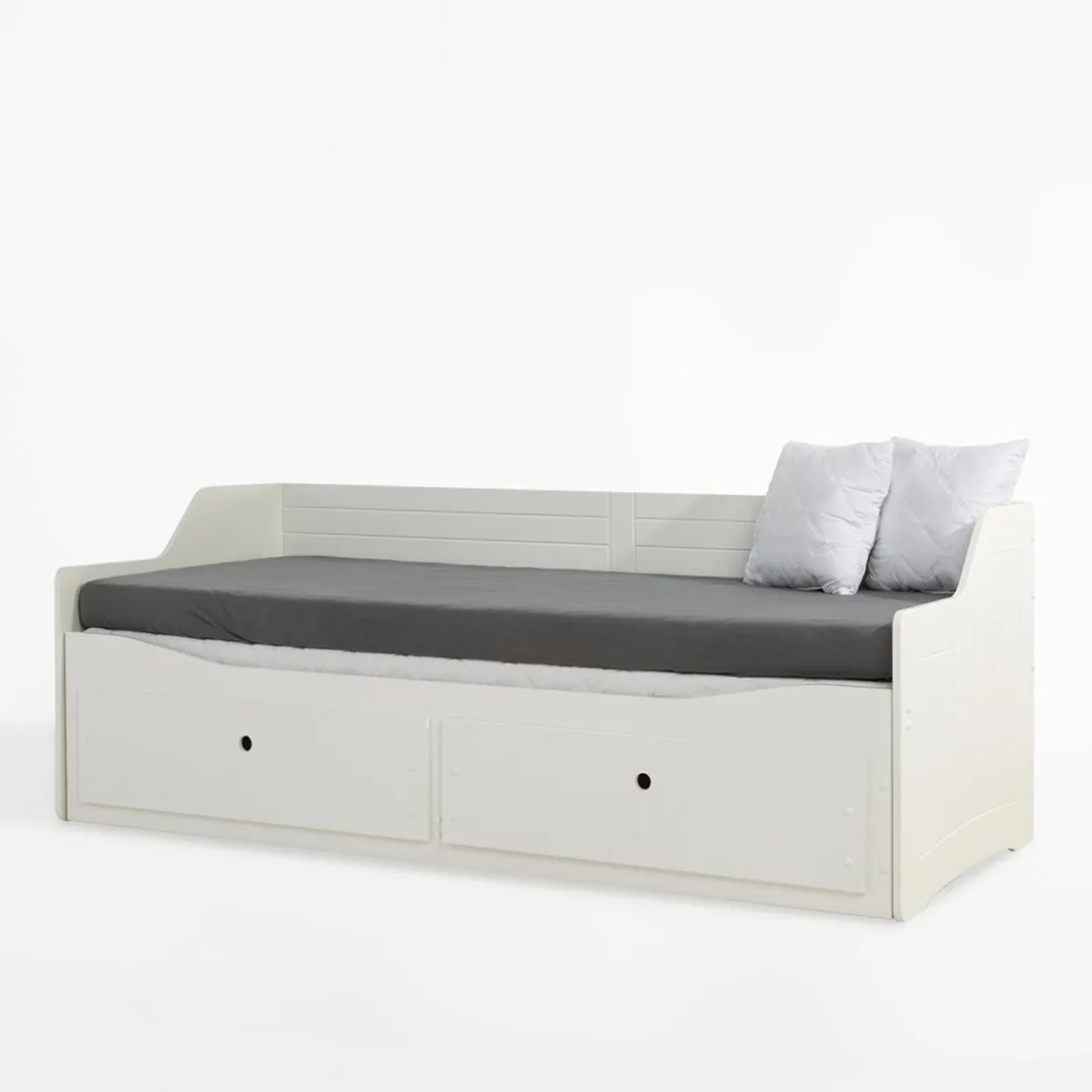 - 2 szuflady to dodatkowa przestrzeń na domowe tekstylia.