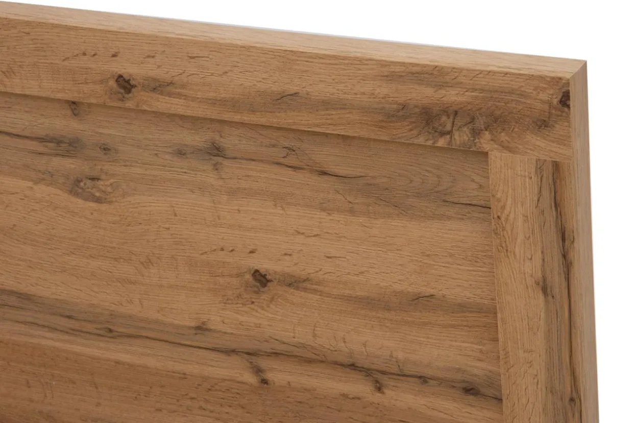 - Mebel został wykonany z płyty meblowej laminowanej w kolorze dąb wotan. Laminat imituje kolorystykę naturalnego drewna, nadaje wnętrzu rustykalny charakter.