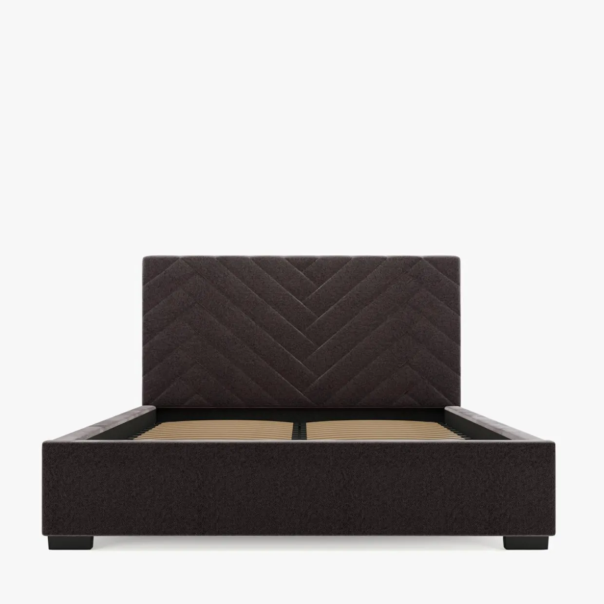 - Łóżko jest wyposażone w tapicerowaną ramę oraz stelaż, które stworzą komfortową powierzchnię spania dla 2 osób.