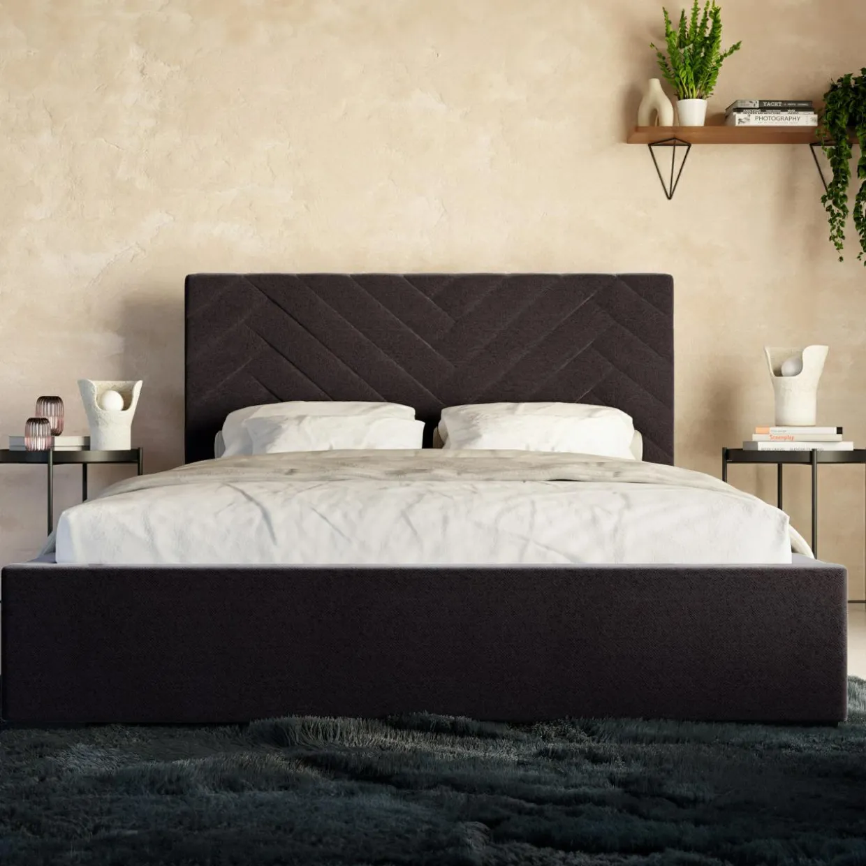 Łóżko DOMENICA w czarnym kolorze będzie mocnym punktem aranżacji sypialni. Nada wnętrzu nie tylko niezwykłej elegancji, ale też wprowadzi tajemniczy klimat.
