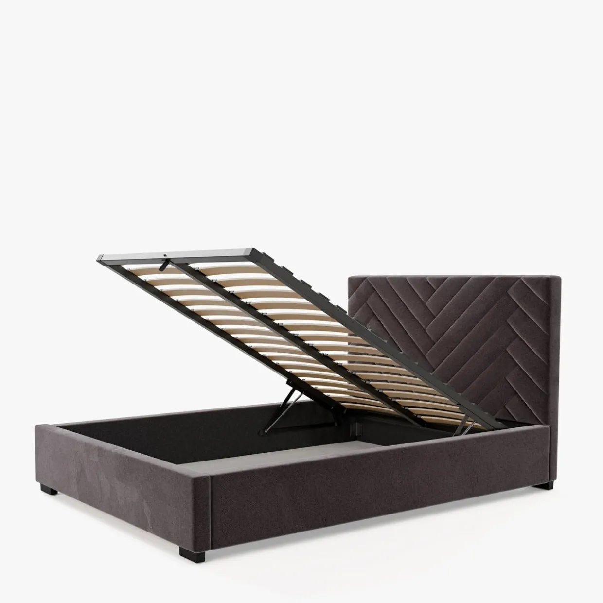 - Pojemnik pod stelażem da Ci przestrzeń, w której przechowasz pościel i inne domowe tekstylia. Dostęp do niego ułatwi Ci podnośnik gazowy.