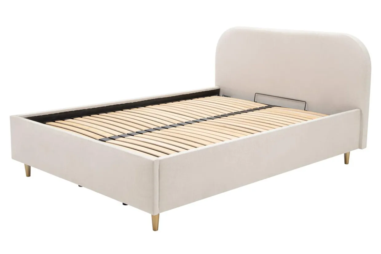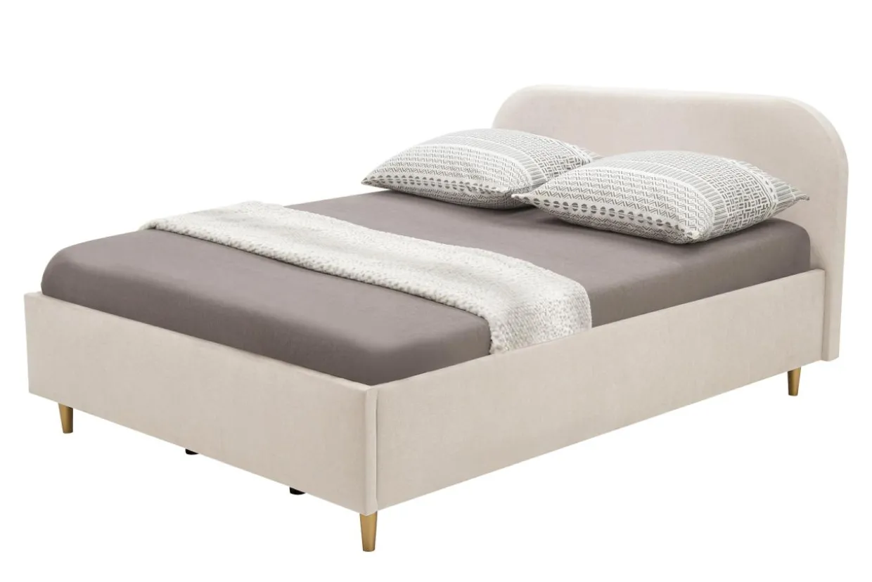 Duże wezgłowie i nogi w kolorze złotym prezentują się elegancko, a kremowe obicie dodaje przytulności Twojej sypialni. Każde zabrudzenie usuniesz z łatwości z tapicerki z systemem Aqua Clean.