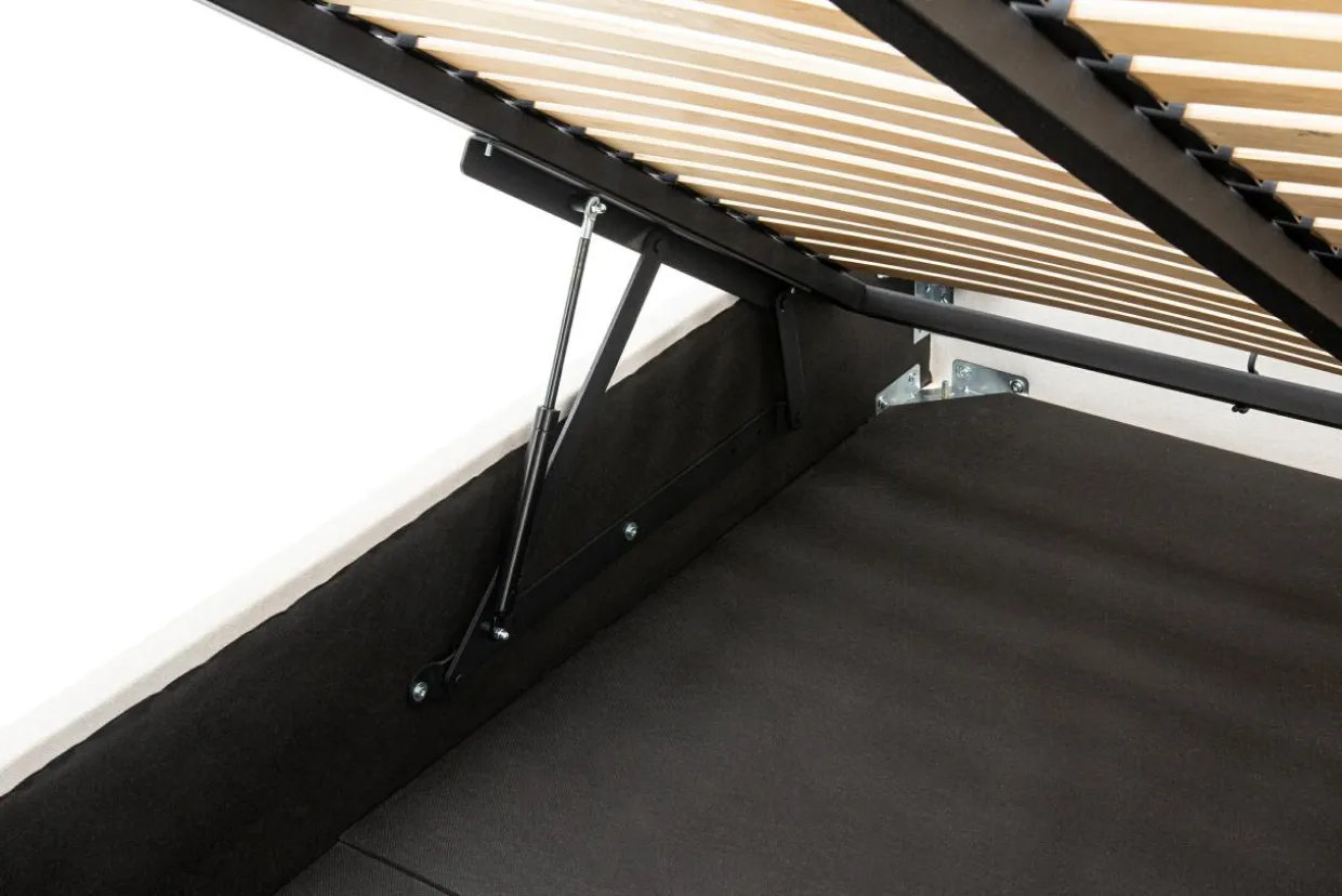 - Pod stelażem znajduje się pojemna skrzynia: wykorzystaj ją do przechowywania pościeli, koców lub innych tekstyliów.