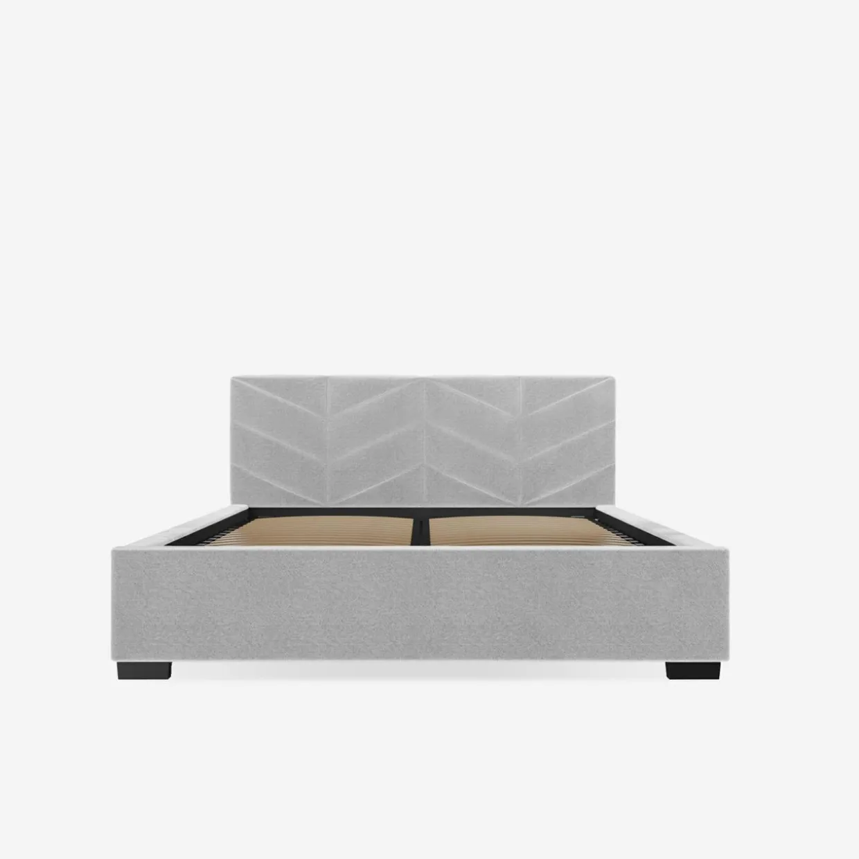 - Łóżko jest wyposażone w tapicerowaną ramę oraz stelaż, które stworzą komfortową powierzchnię spania dla 2 osób.