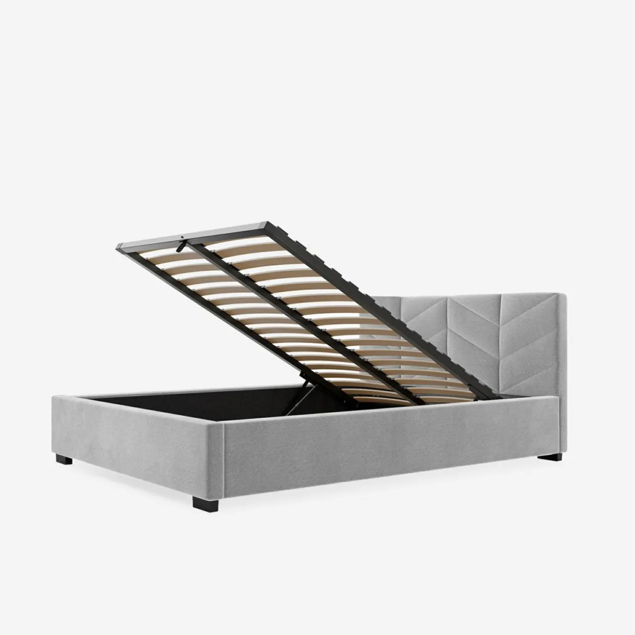 - Pojemnik pod stelażem da Ci przestrzeń, w której przechowasz pościel i inne domowe tekstylia. Dostęp do niego ułatwi Ci podnośnik gazowy.