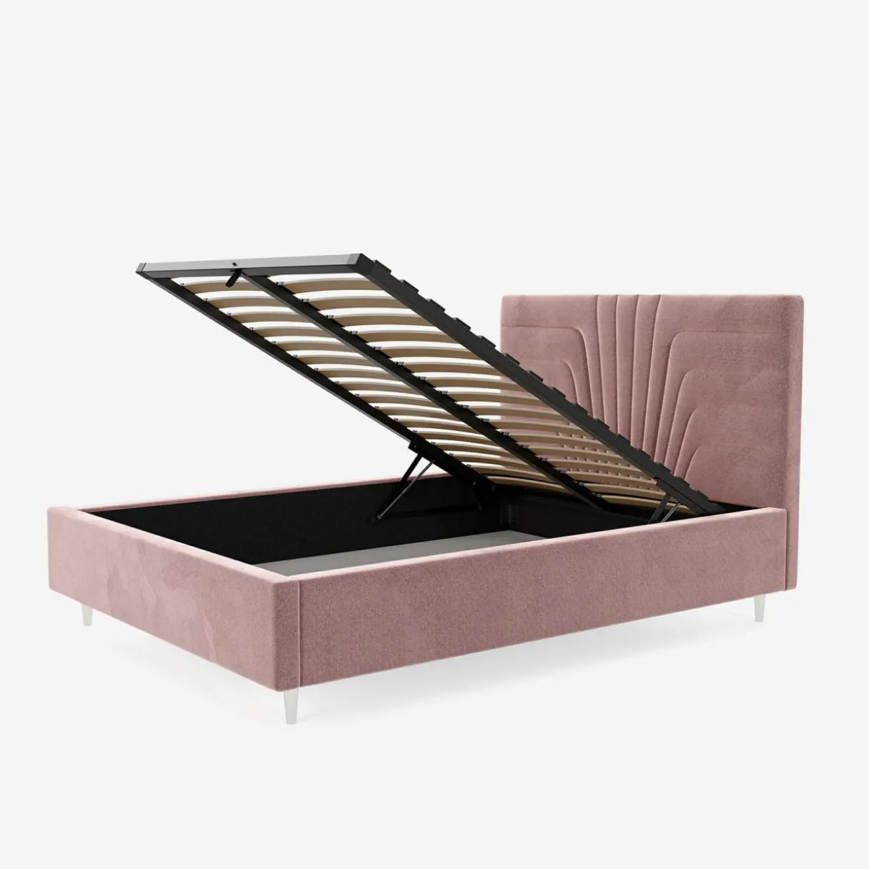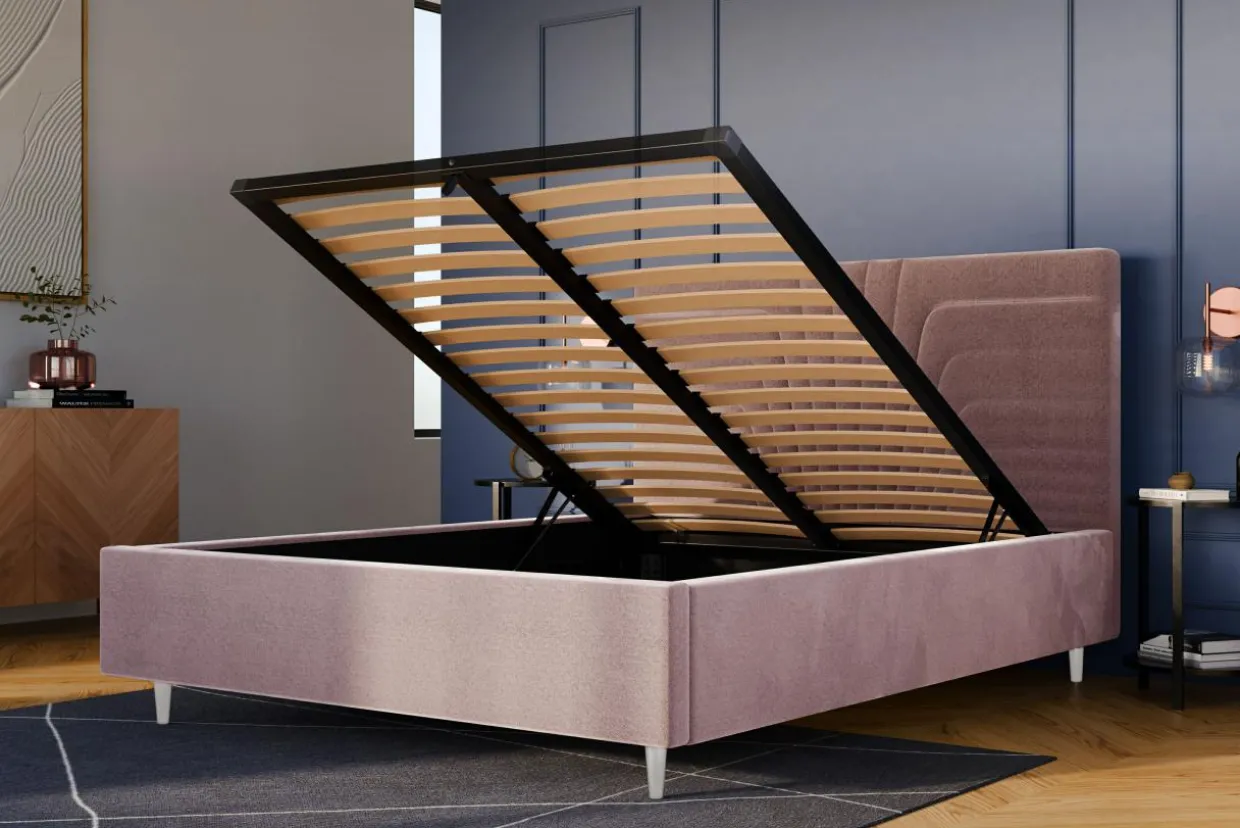 - Pojemnik pod stelażem da Ci przestrzeń, w której przechowasz pościel i inne domowe tekstylia. Dostęp do niego ułatwi Ci podnośnik gazowy.