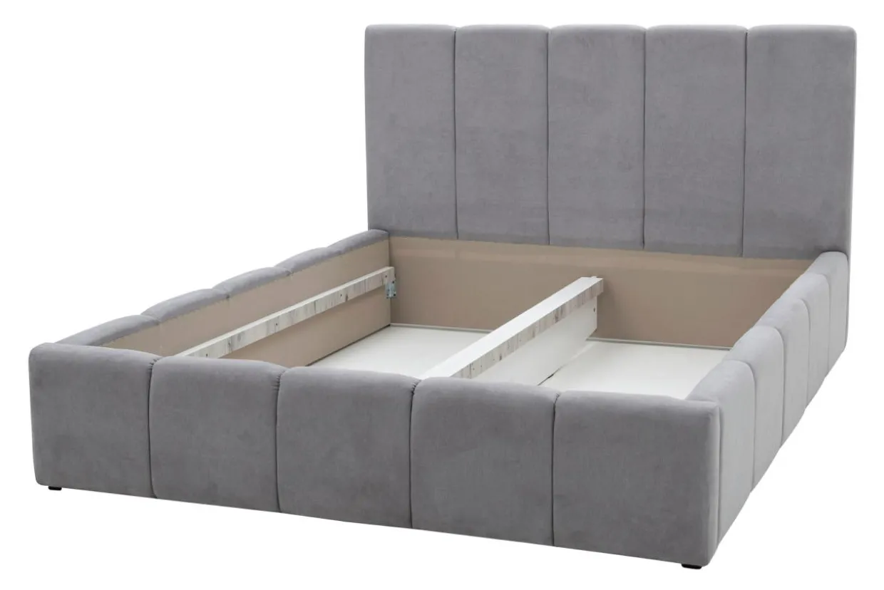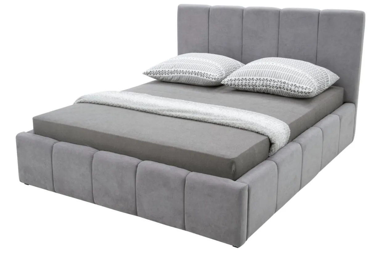 ŁÓŻKO Z SZARĄ TAPICERKĄ