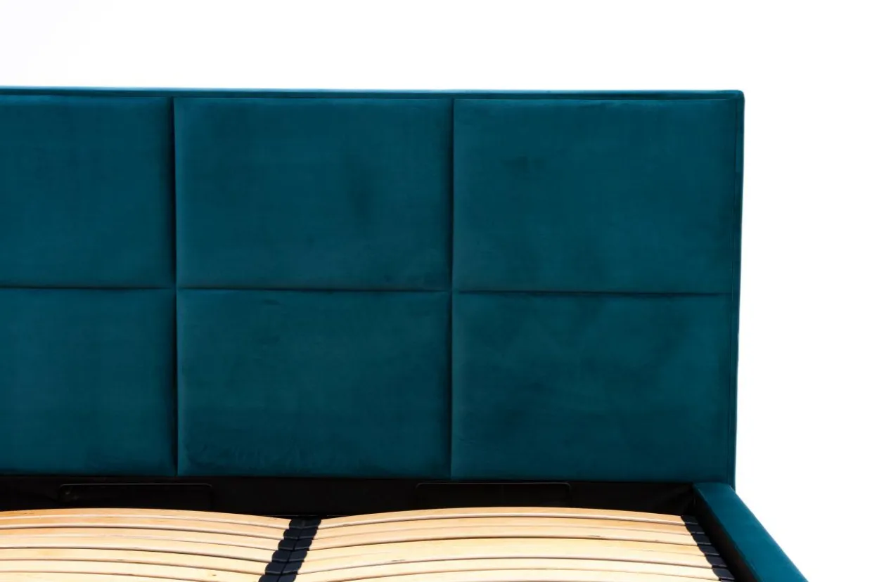 Łóżko wyposażono w praktyczny pojemnik na pościel, znajdujący się pod stelażem.