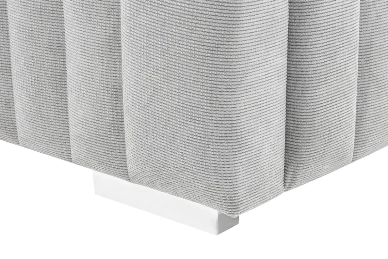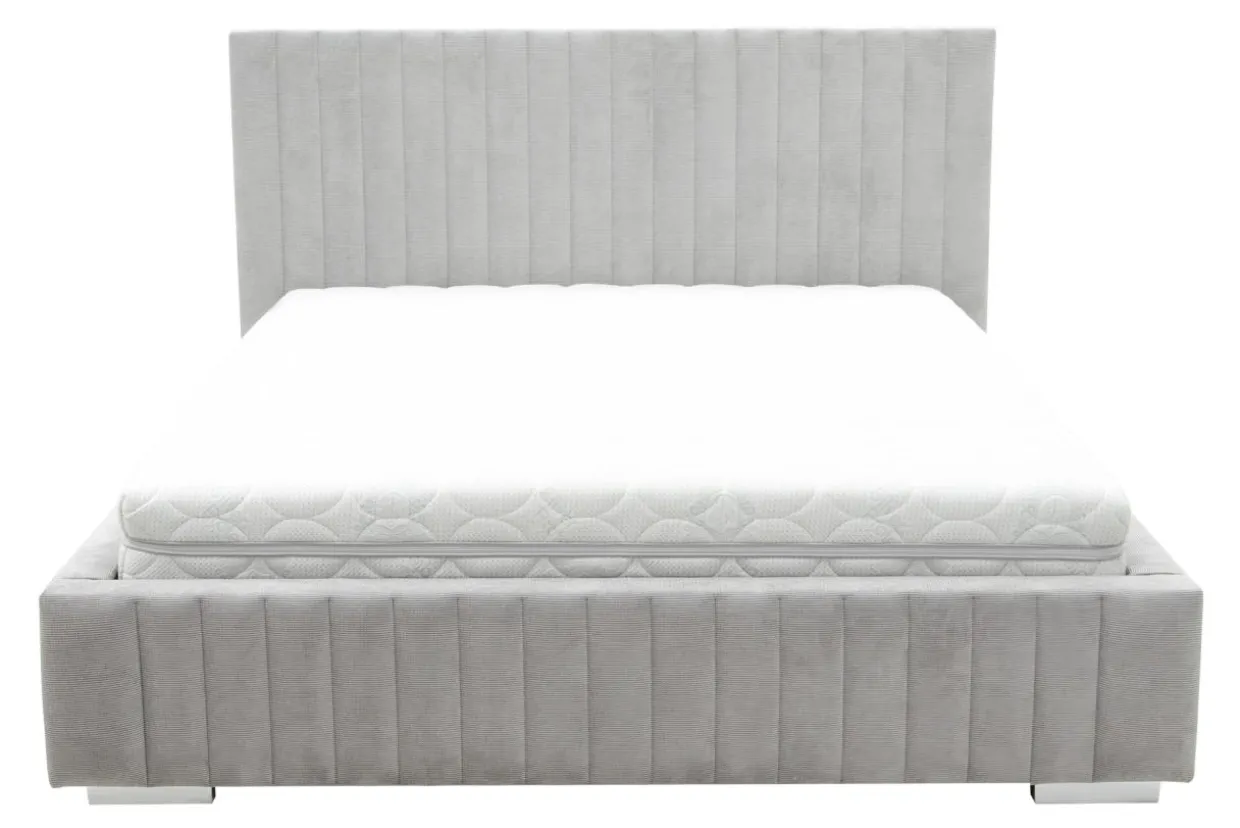 - Szary kolor i pionowe przeszycia na wezgłowiu wyglądają nowocześnie.