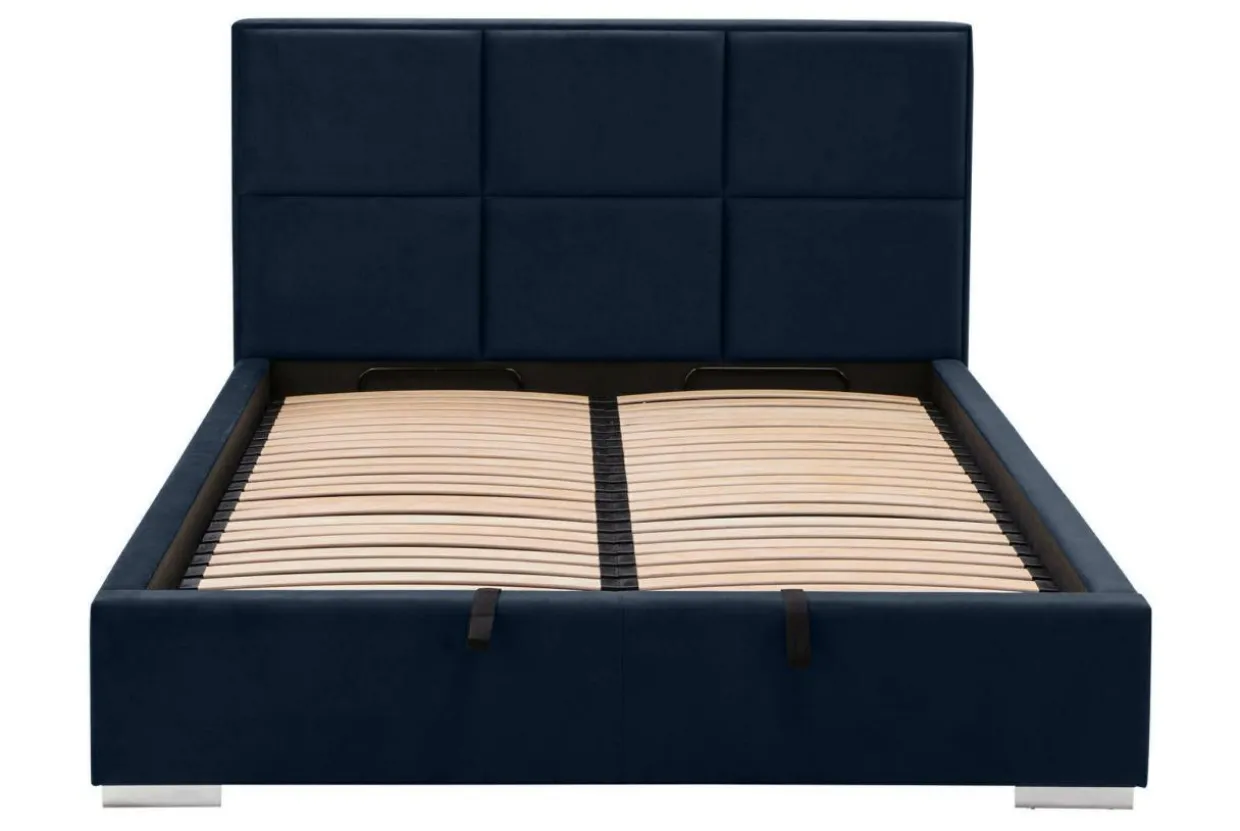 Łóżko wyposażono w praktyczny pojemnik na pościel, znajdujący się pod stelażem.
