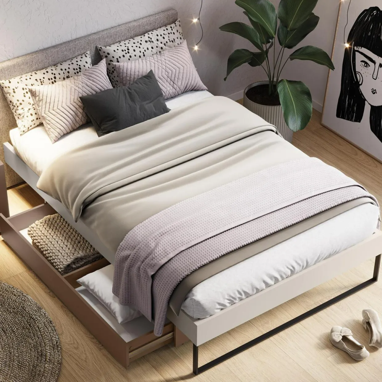 Do łóżka należy dokupić preferowany przez siebie materac o powierzchni spania 120×200 cm.