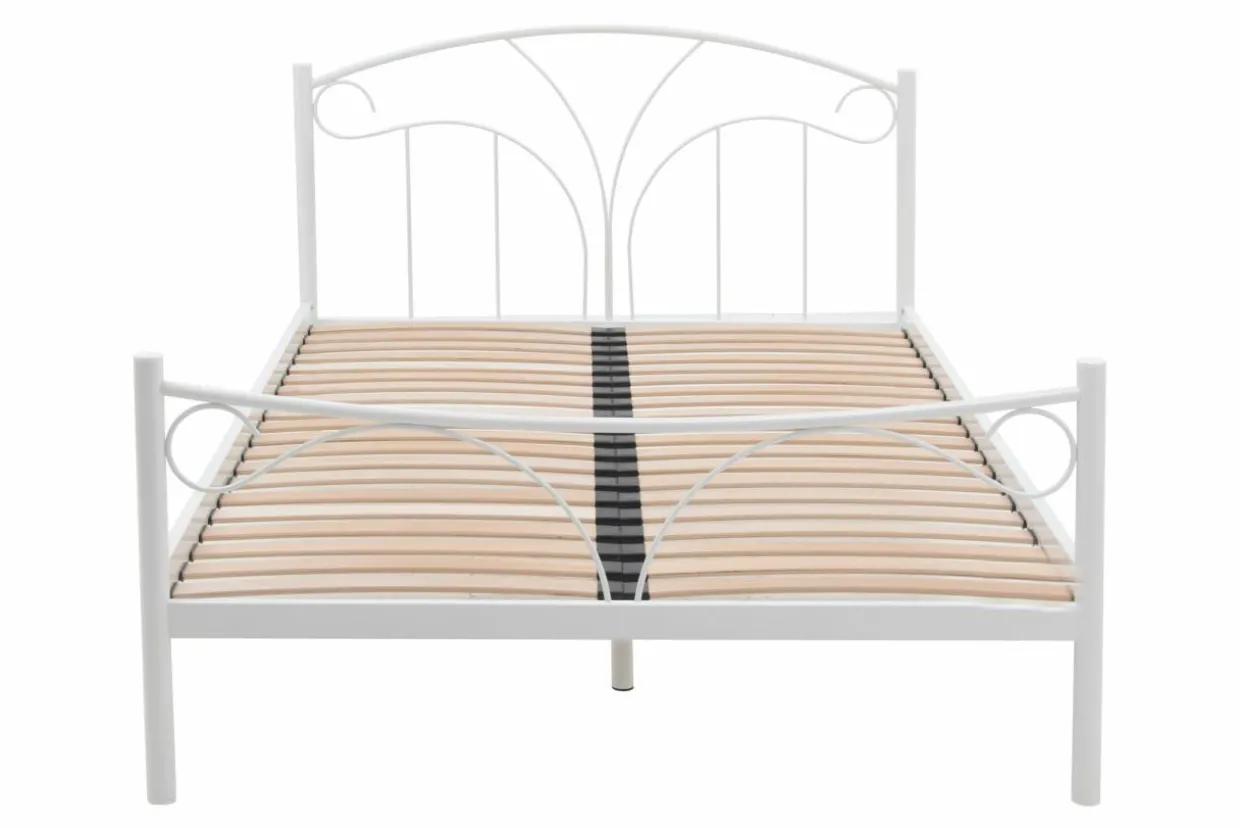 Ramę łóżka zdobią delikatne, gięte elementy, które podkreślą wygląd każdego rustykalnego wnętrza.